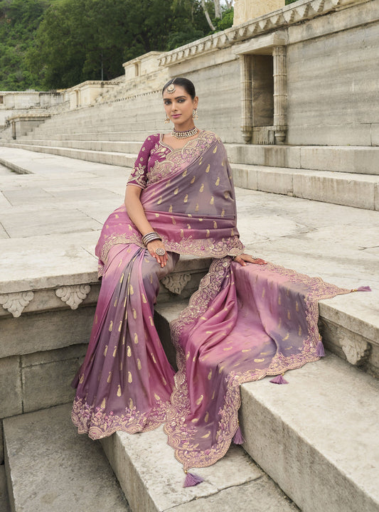 Lavender Viscose Silk With Embroidery Butti Work Border Saree