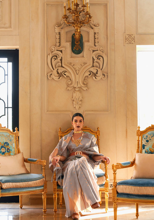 Grey Kyaari Silk Tissue Zari Khicha Zari Handloom Saree