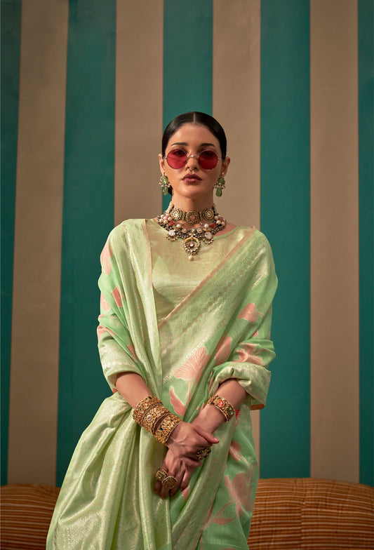 Mint Green Kapri Linen Handloom Silk Saree