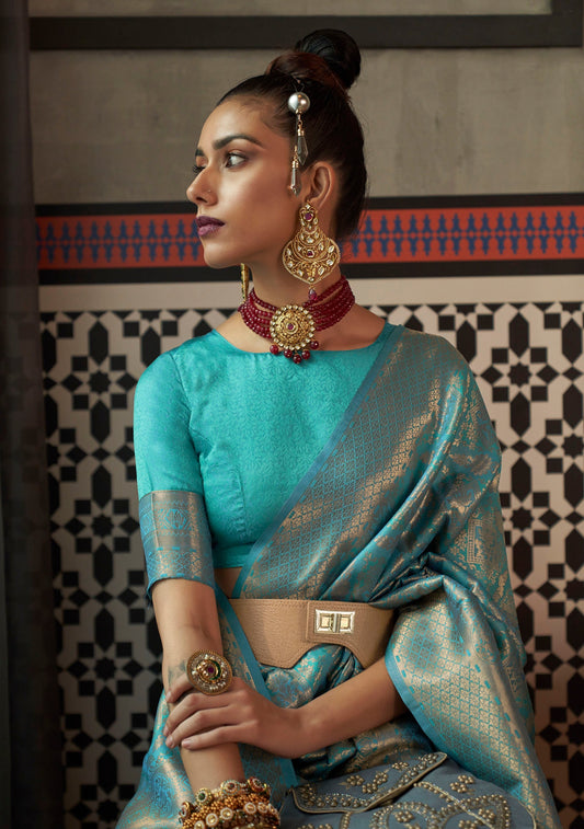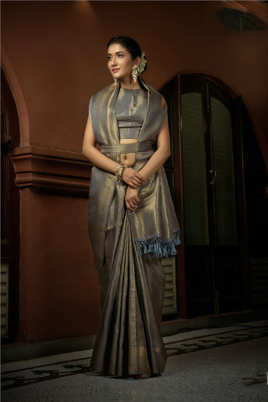 Platinum Grey Color Golden Zari Kanjeevaram Silk Saree