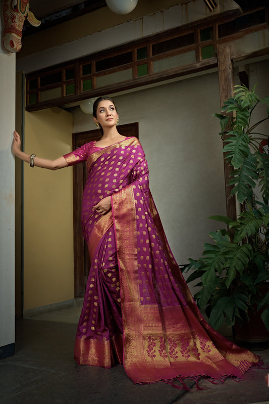 Purple Color Golden Zari Kanjeevaram Silk Saree