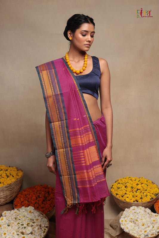 Traditional Maroon Handloom Cotton Kanchi Saree