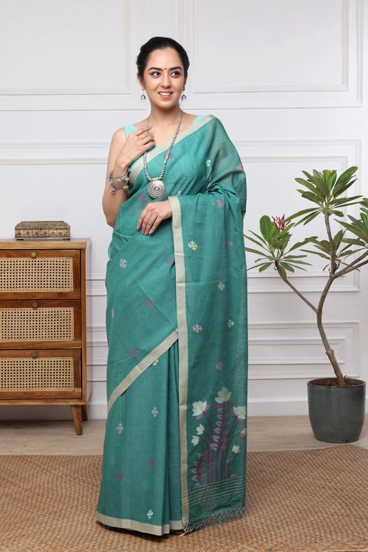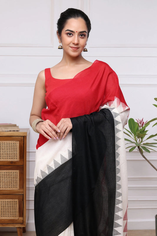 Handloom Cream Tricolour Soft Cotton Jamdani Saree