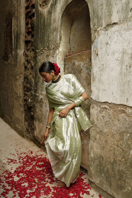 Chandi Aur Tamba I Silver And Copper Handloom Tissue Saree