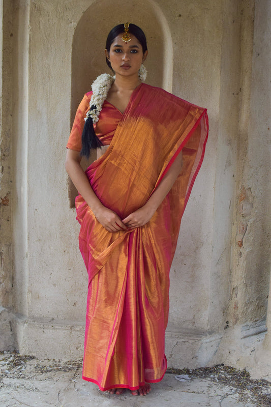 Empress of the ocean I Handwoven mulberry silk tissue saree