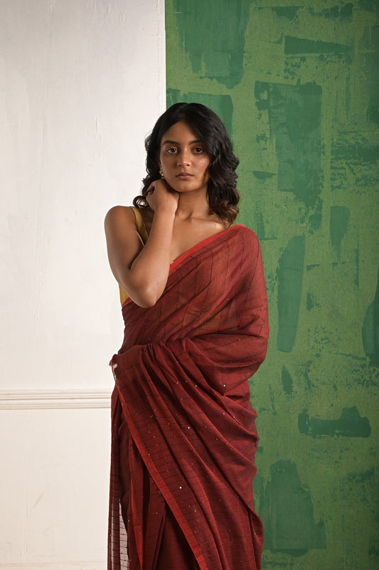 Saanjh Baati ki khushboo | Maroon mul cotton saree with beaded sequins