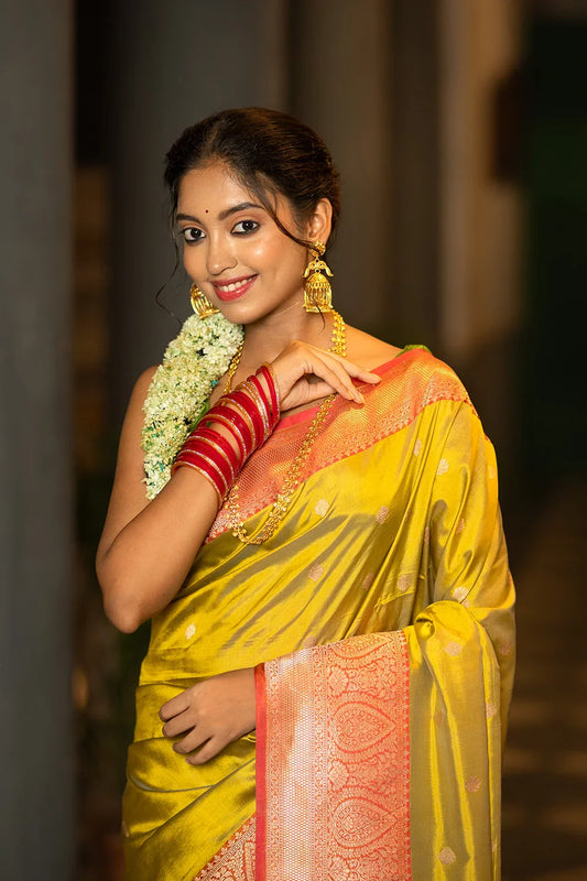Handloom Green & Red Pure Silk Zari Banarasi Saree