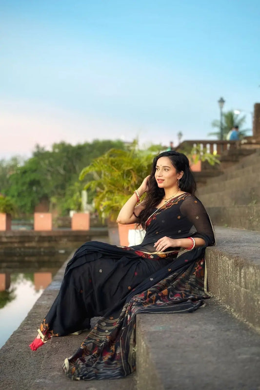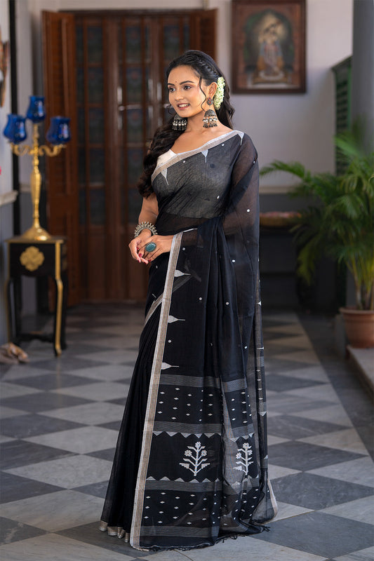 Handloom Black Soft Cotton Traditional Jamdani Saree