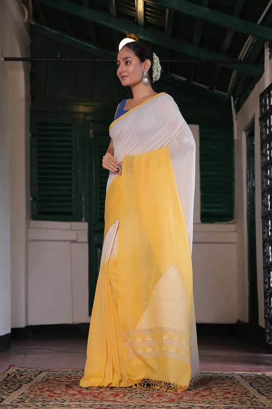 Handloom White & Yellow Soft Cotton Jamdani Saree