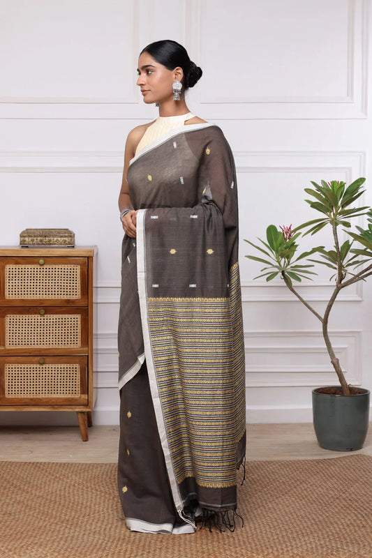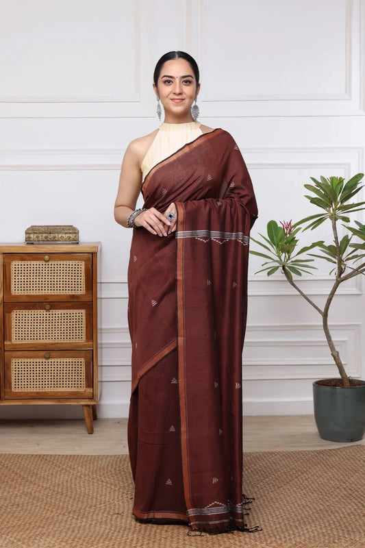 Handloom Espresso Brown Pure Cotton Saree