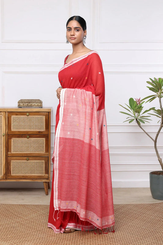 Handloom Red Pure Cotton Saree with Polka Dot Motifs