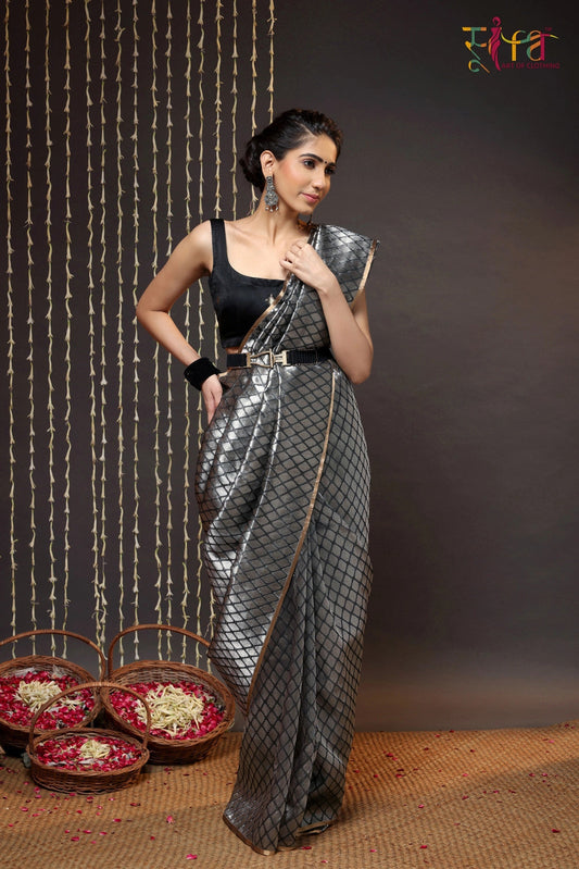 Handloom Silver & Black Chanderi Pure Silk Saree