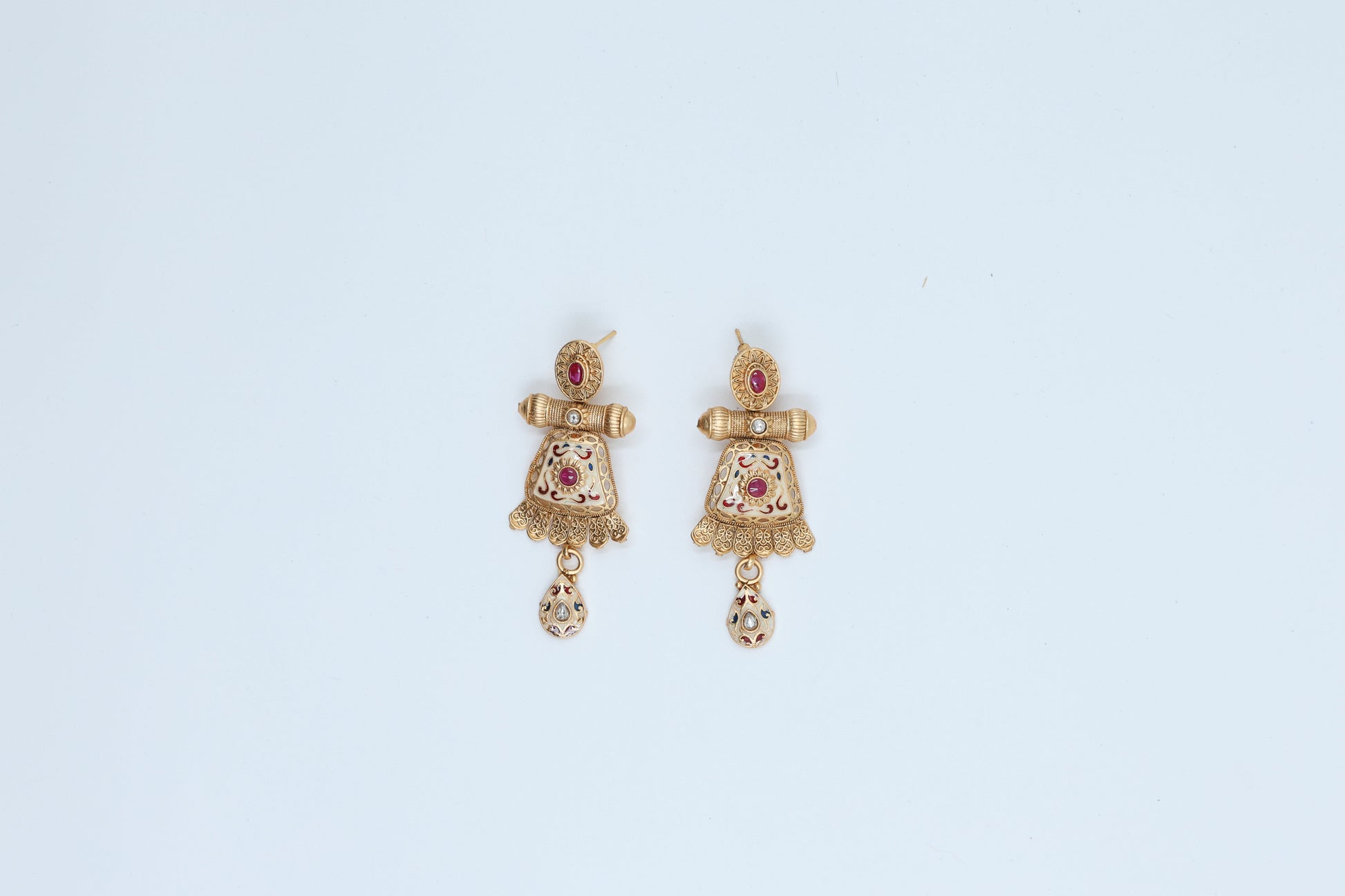 Add a pop of color to your saree with this 18K gold plated three layer Meena set in pink and green. Perfectly paired with solid color sarees, this set is sure to make a statement with its unique design and vibrant hues. Elevate your style game with this fun and playful accessory!