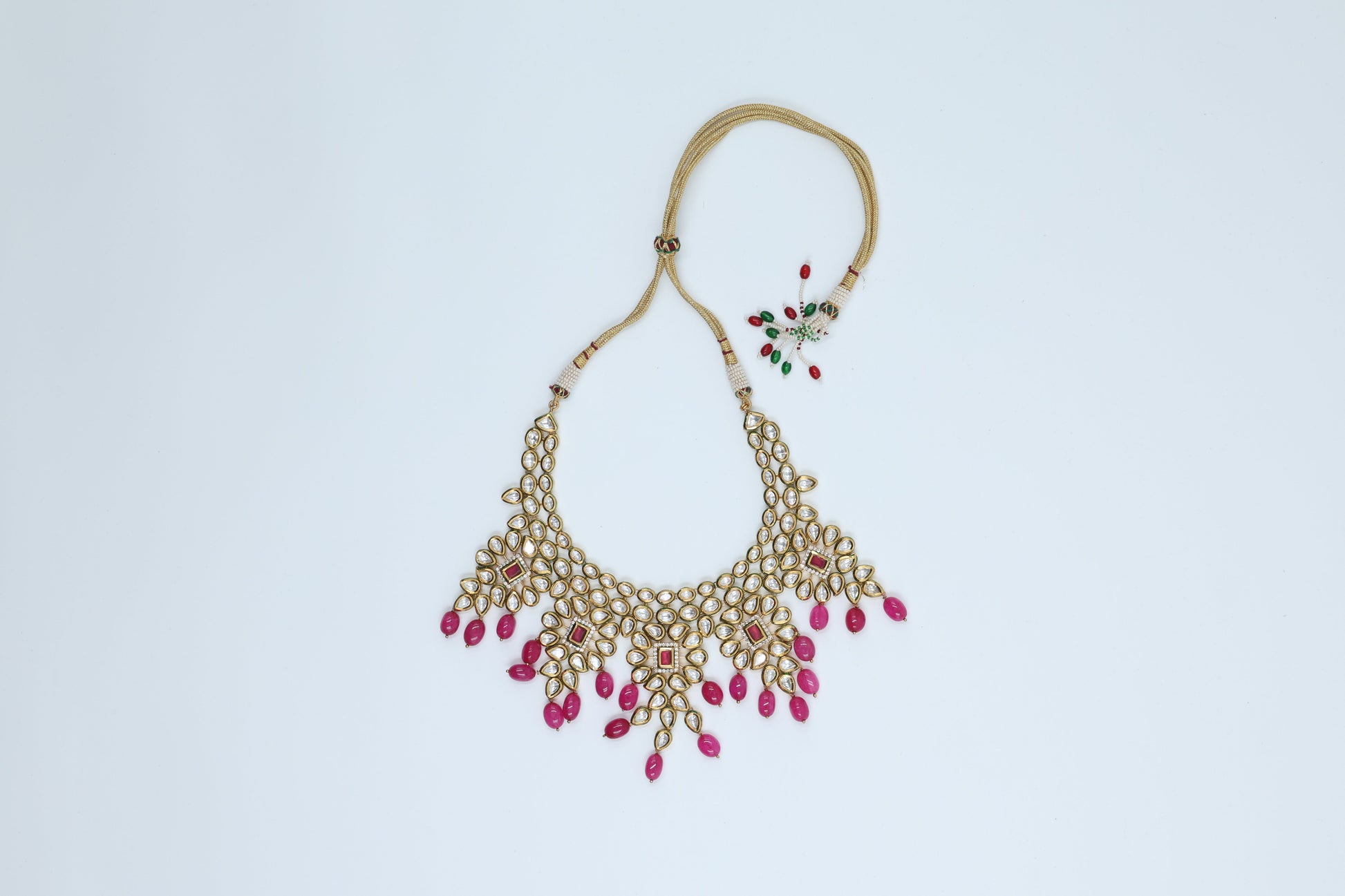 22K Gold Plated Bridal Pink Kundan Set