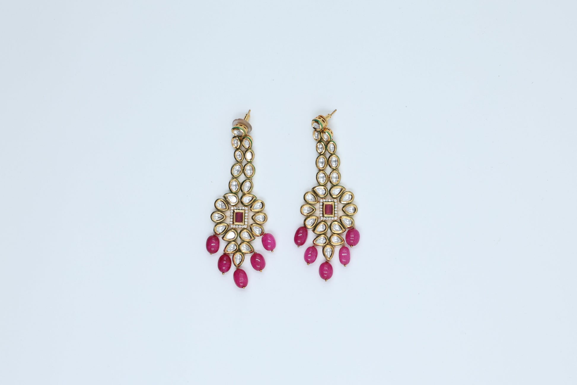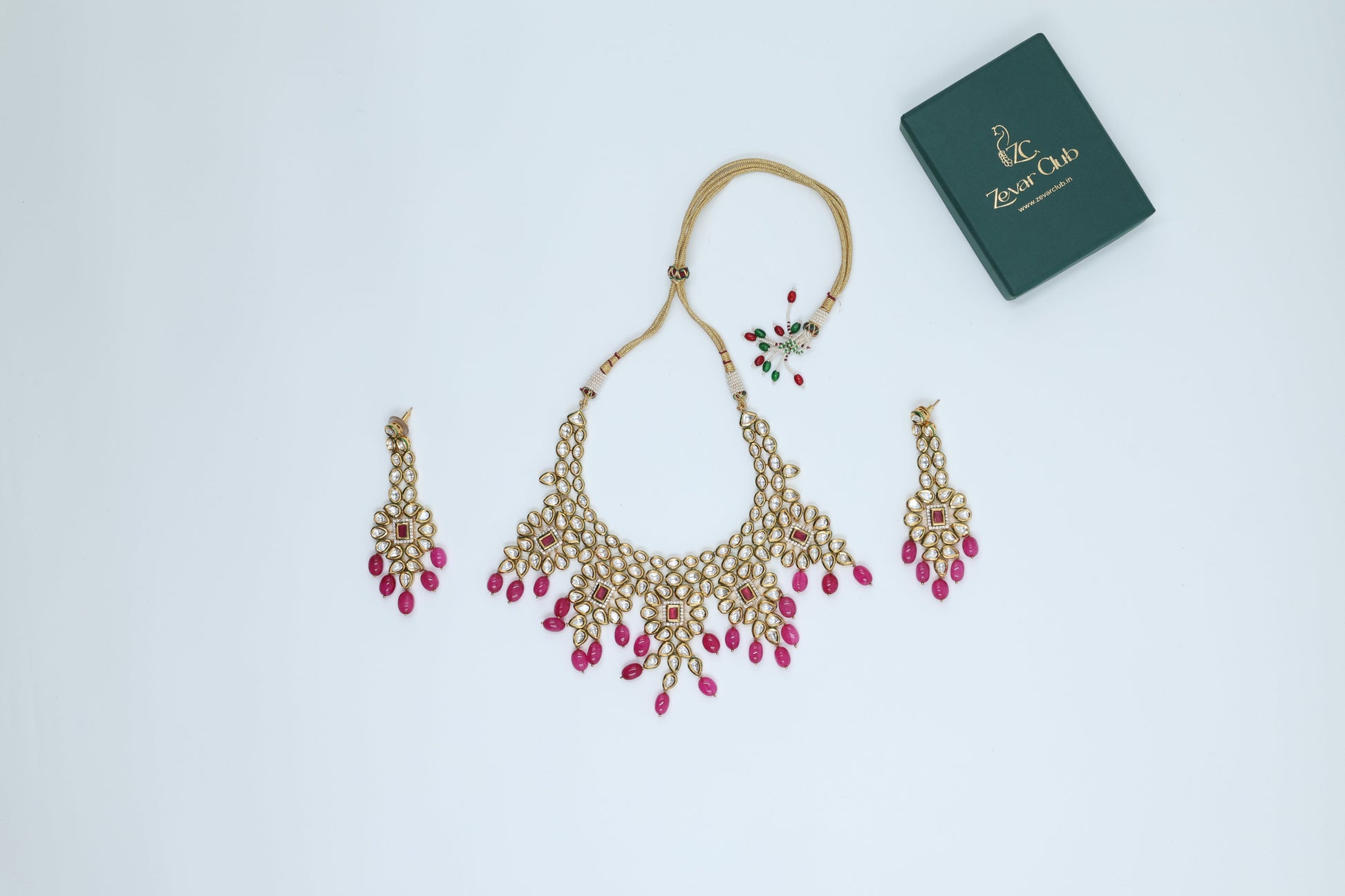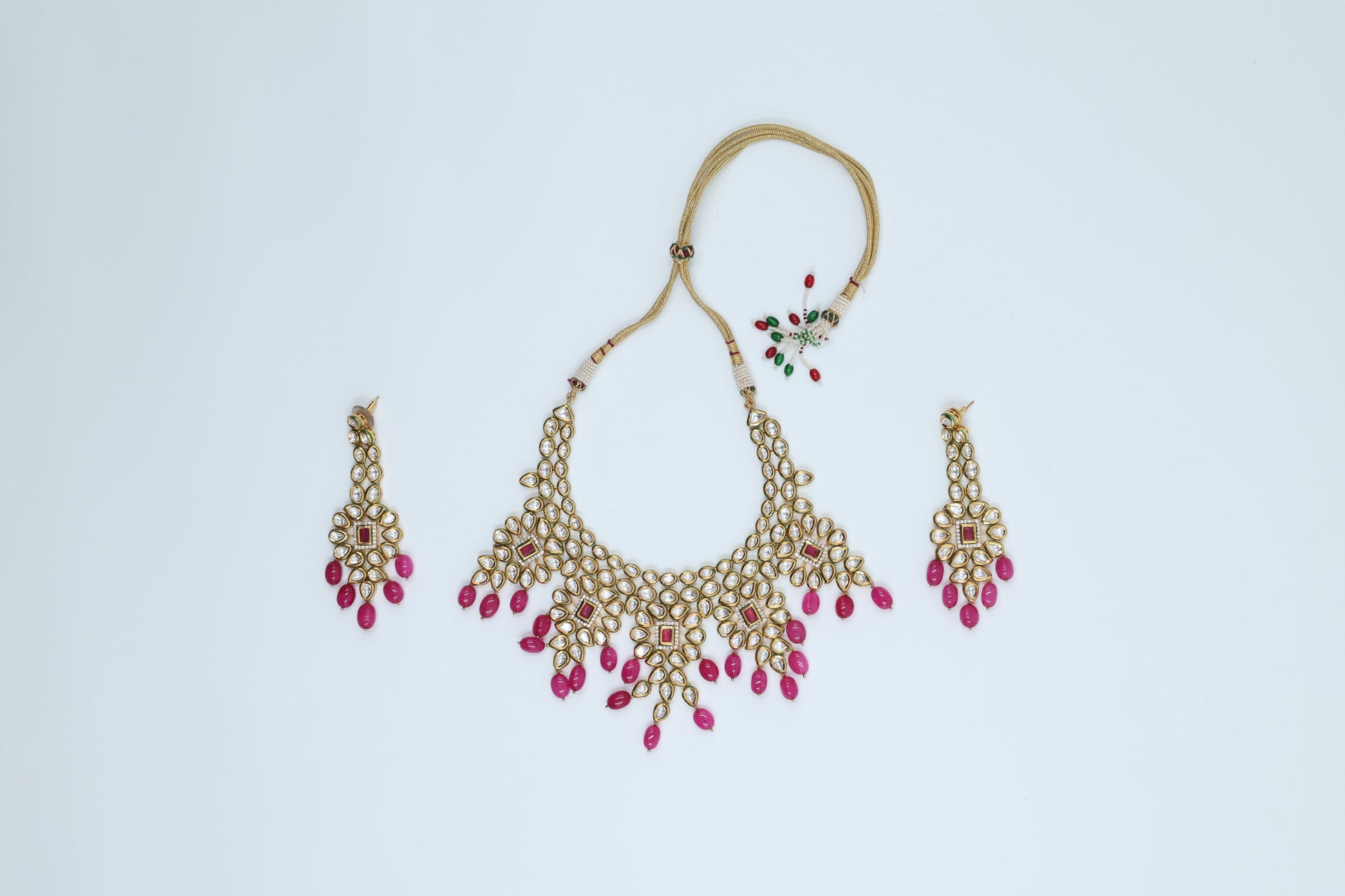 Fall in love with our 22K Gold Plated Bridal Pink Kundan Set! The perfect accessory for any special occasion, this exquisite set features stunning pink kundan stones on a 22K gold plated base. Elevate your look and sparkle with confidence. Limited quantities available, so get yours now!