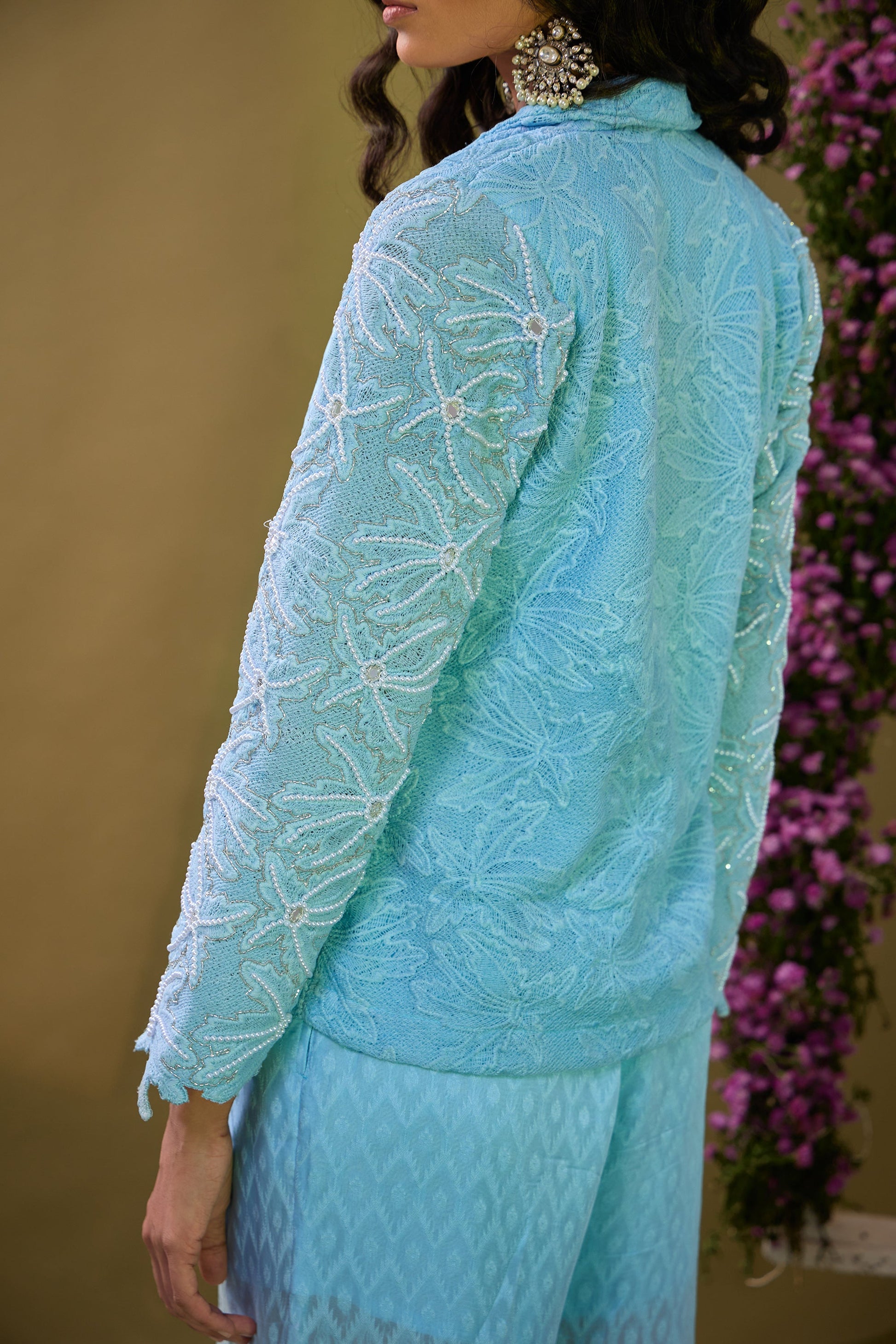 Akash Powder Blue Hand Embroidered Designer Blazer Set