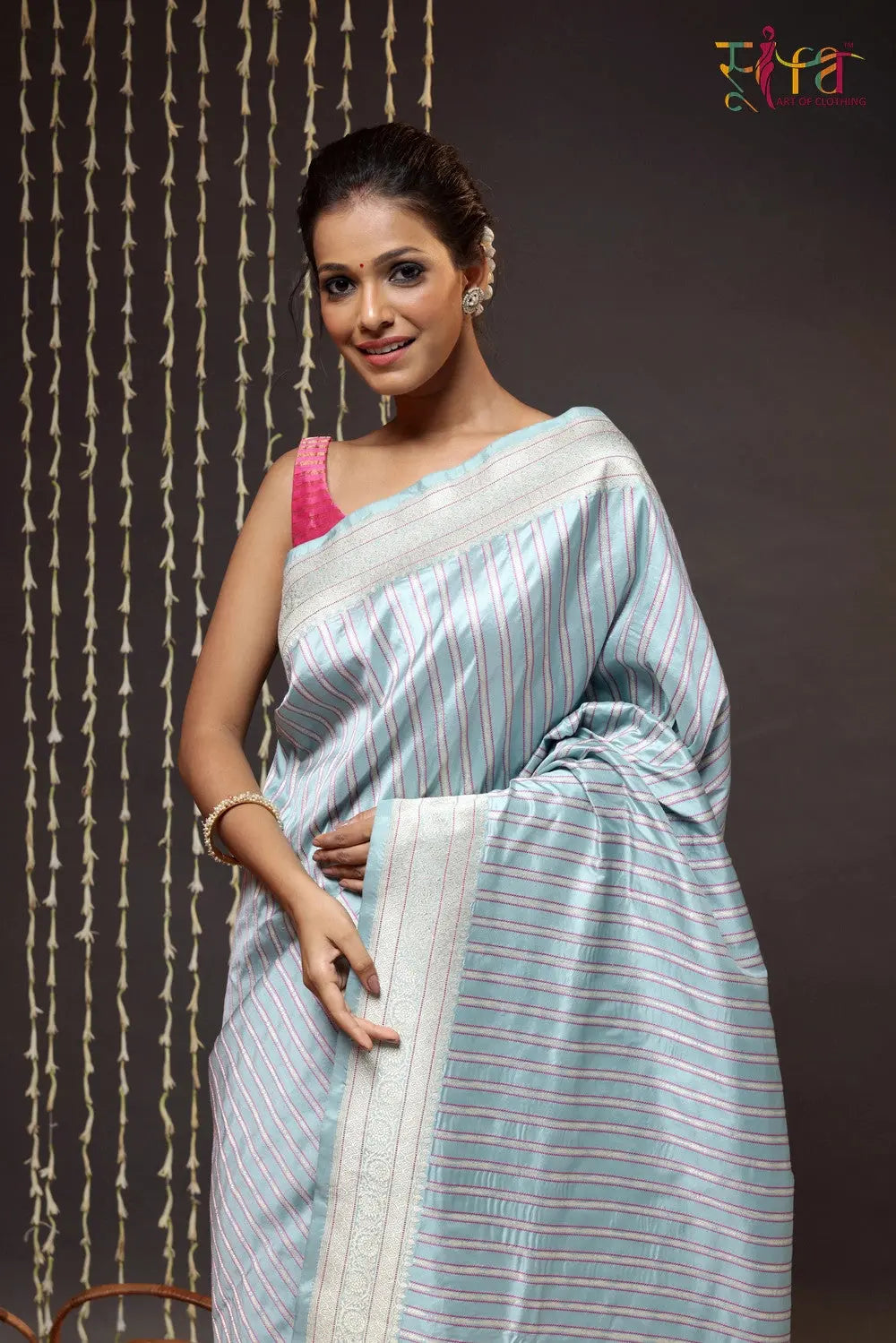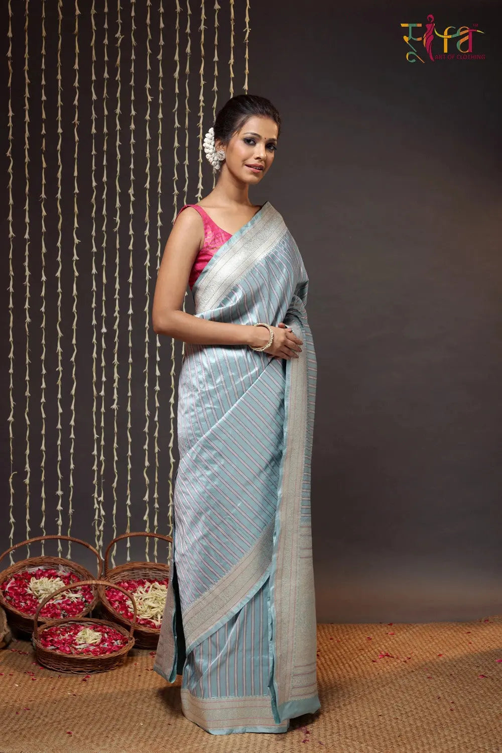 Arctic Blue Pure Silk Brocade Banarasi Saree