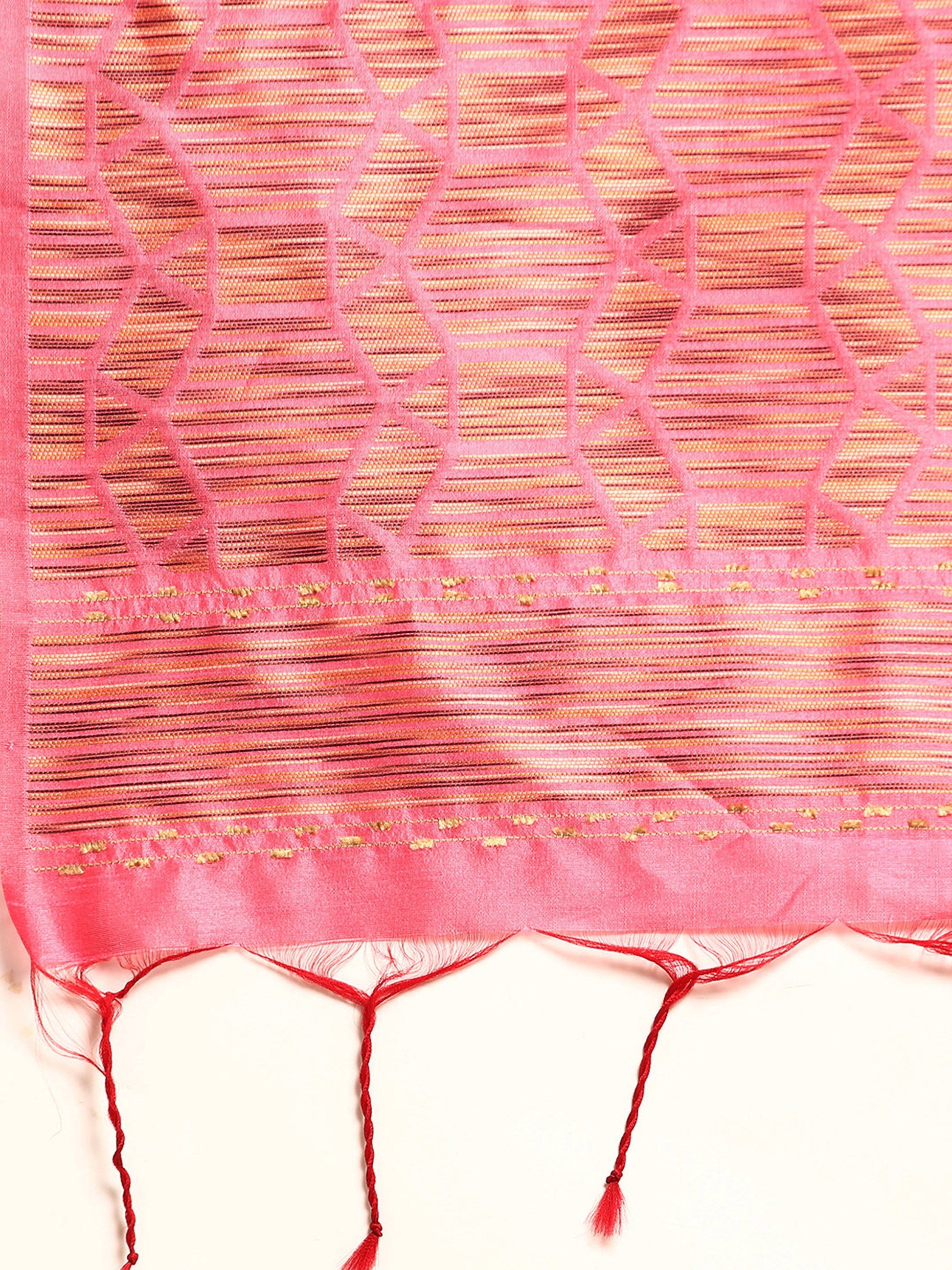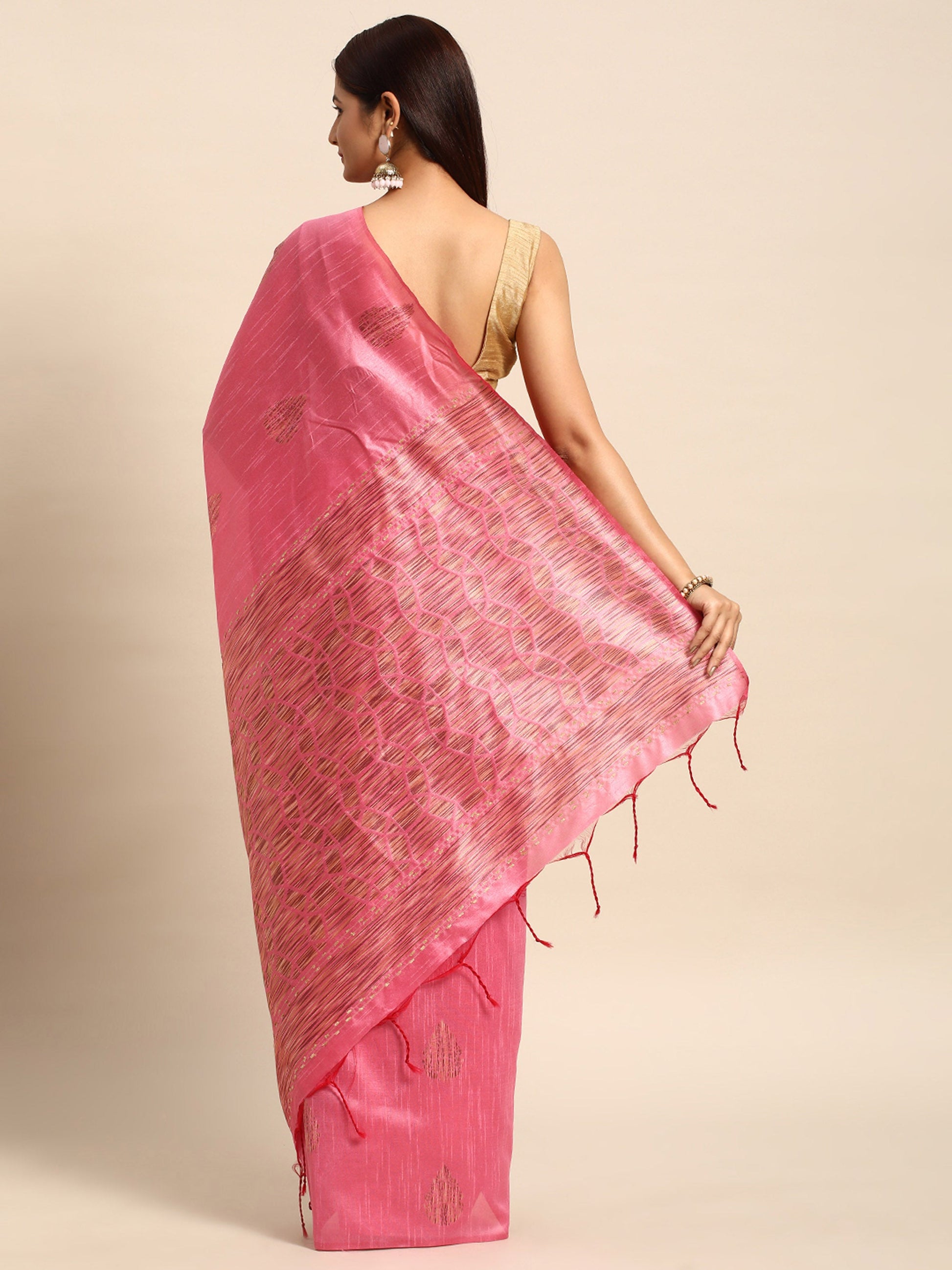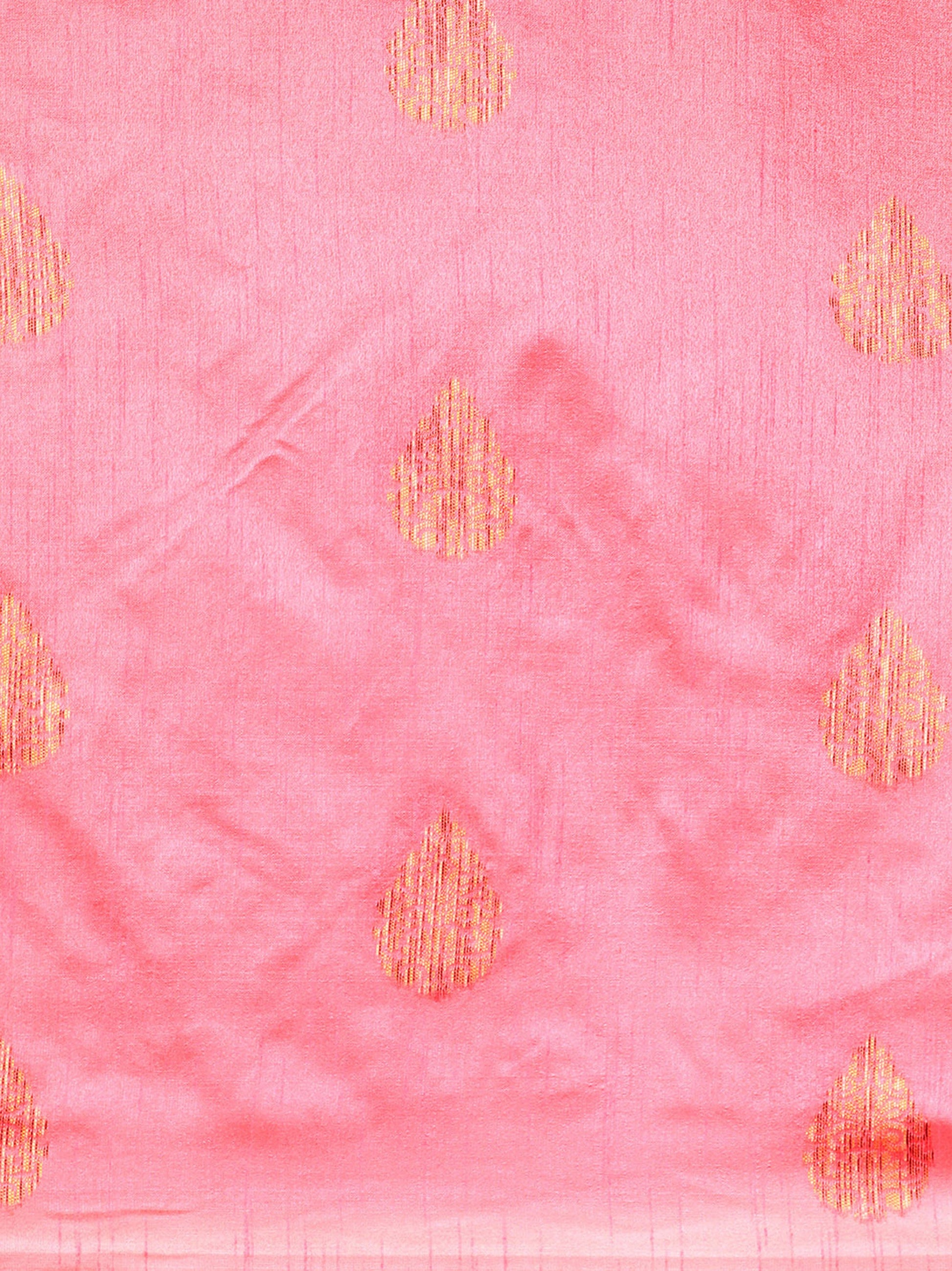 Baby Pink Handloom Ghicha Raw Silk Butti woven saree