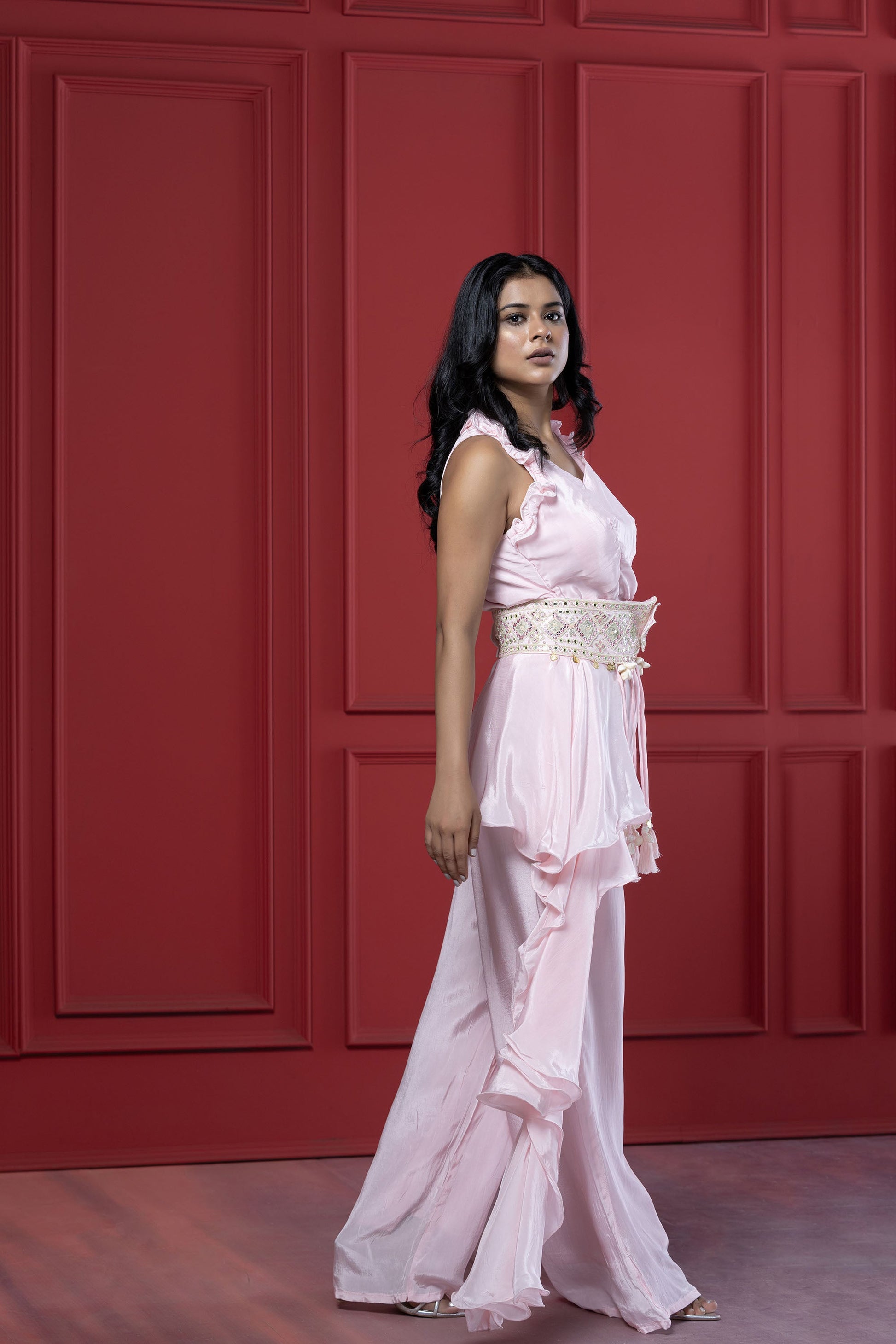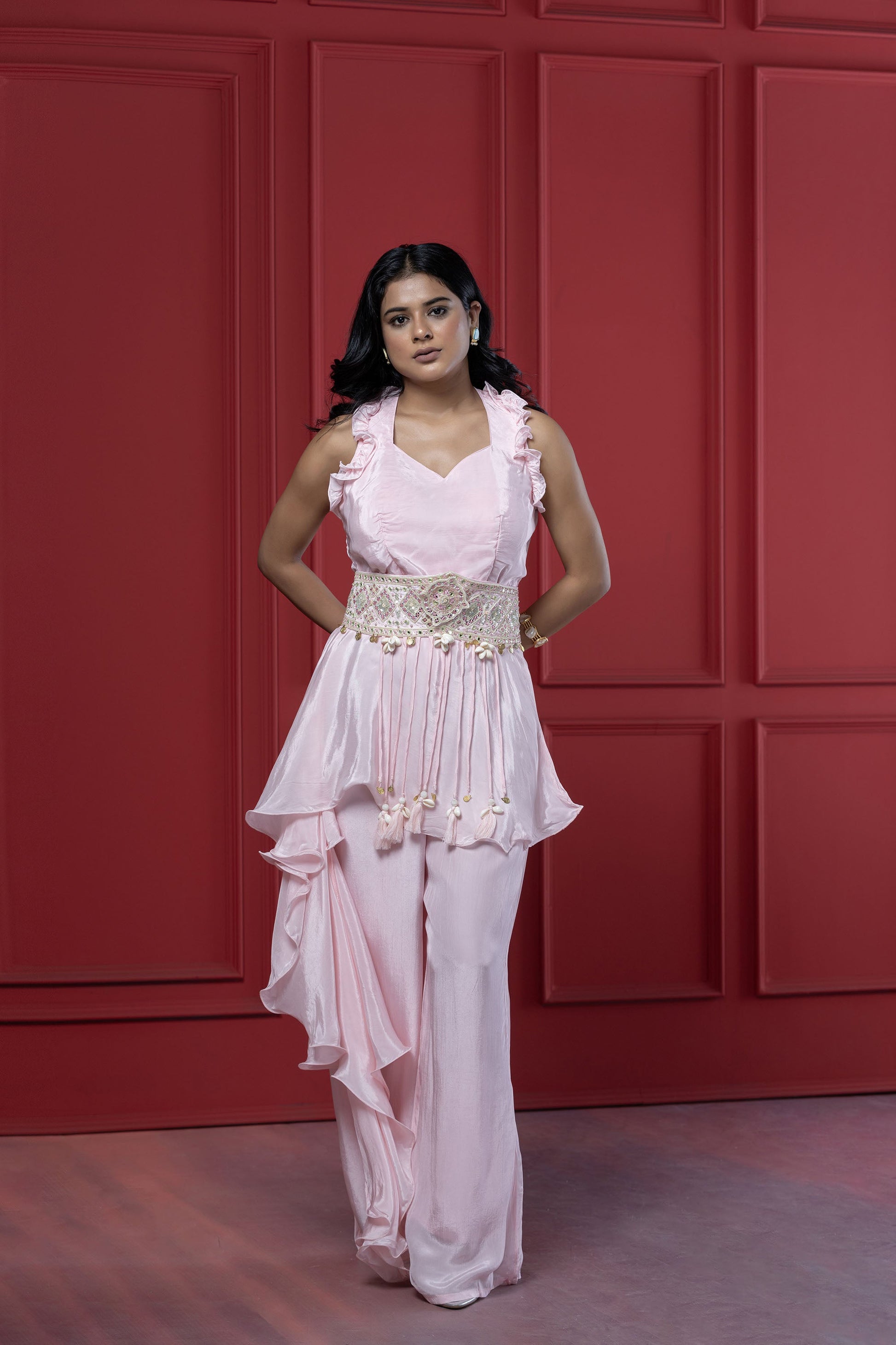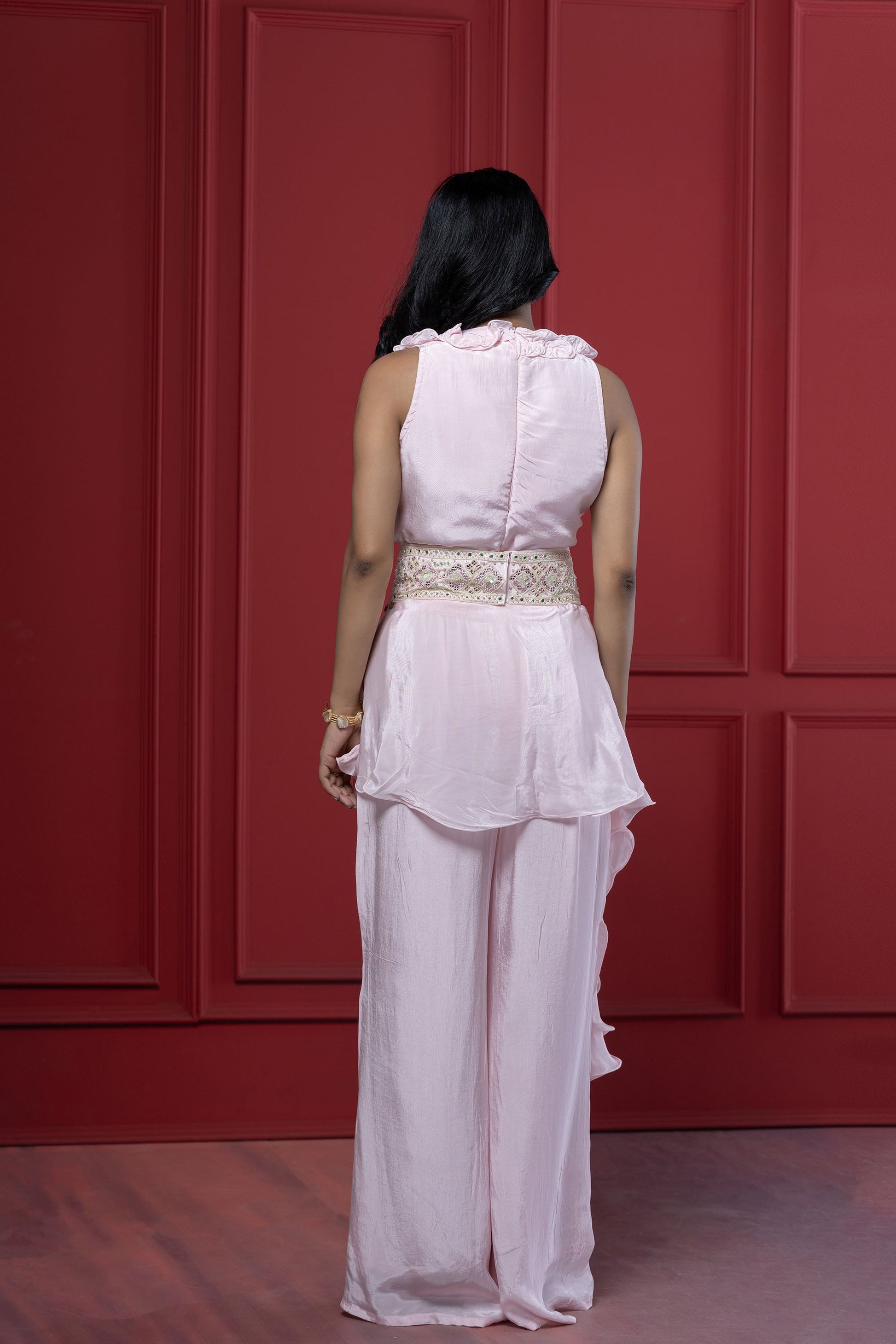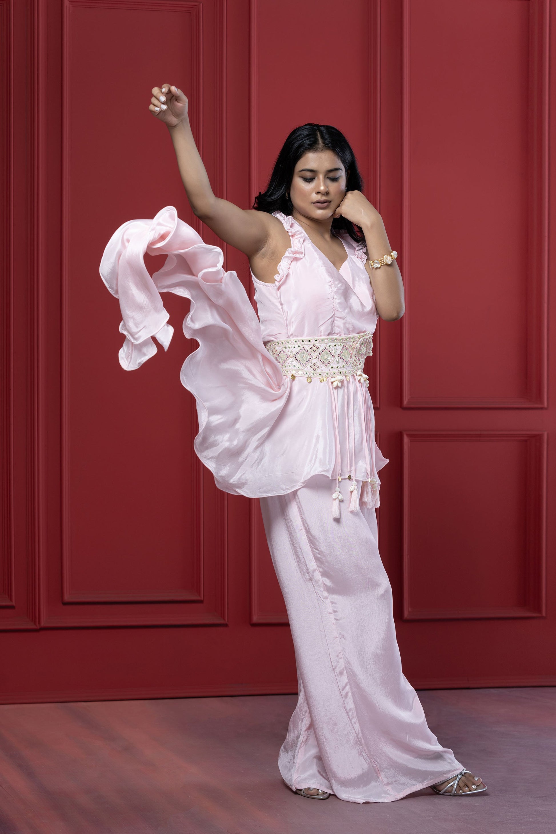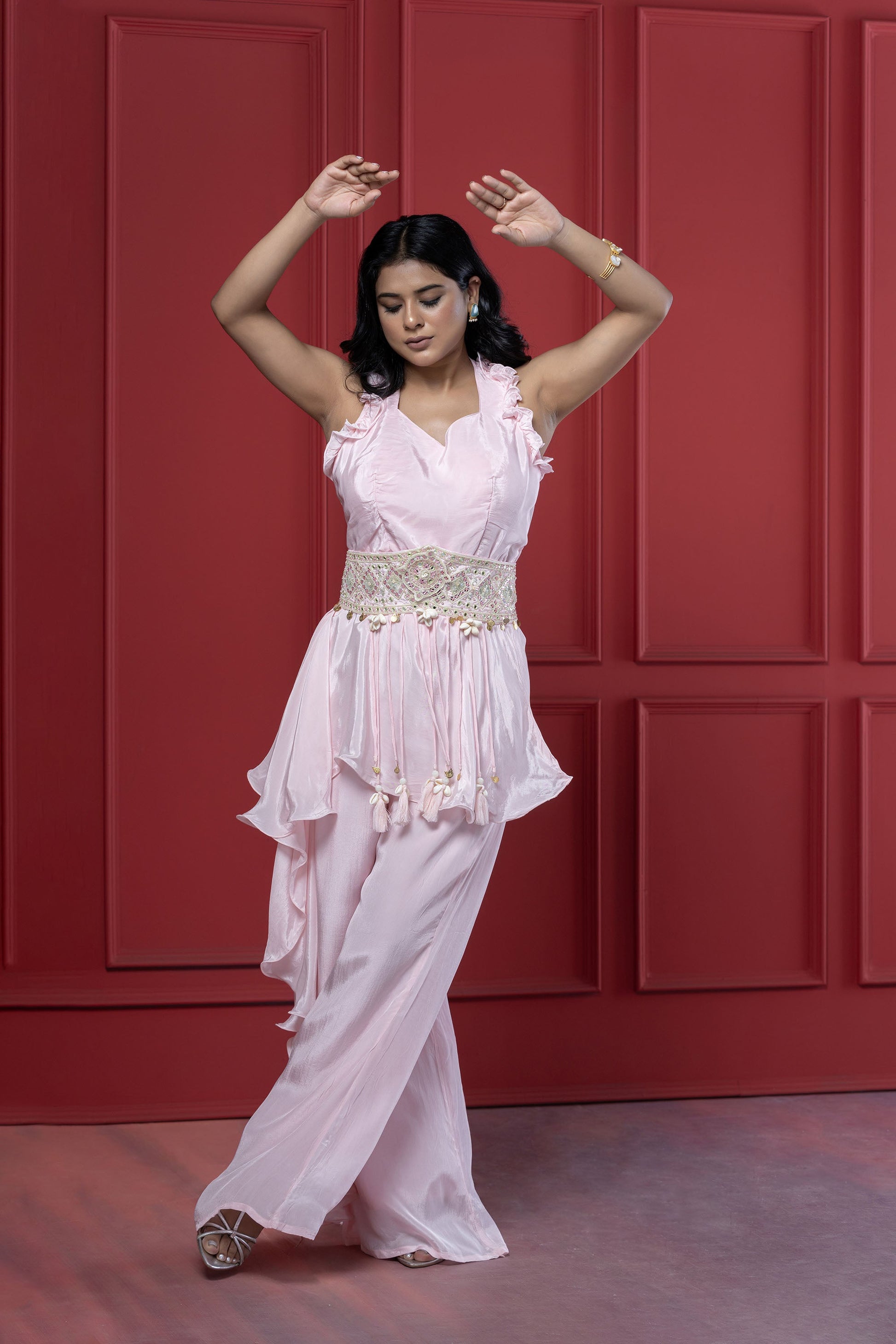 Baby Pink Indo Western Mirror & Shell's Palazzo Set