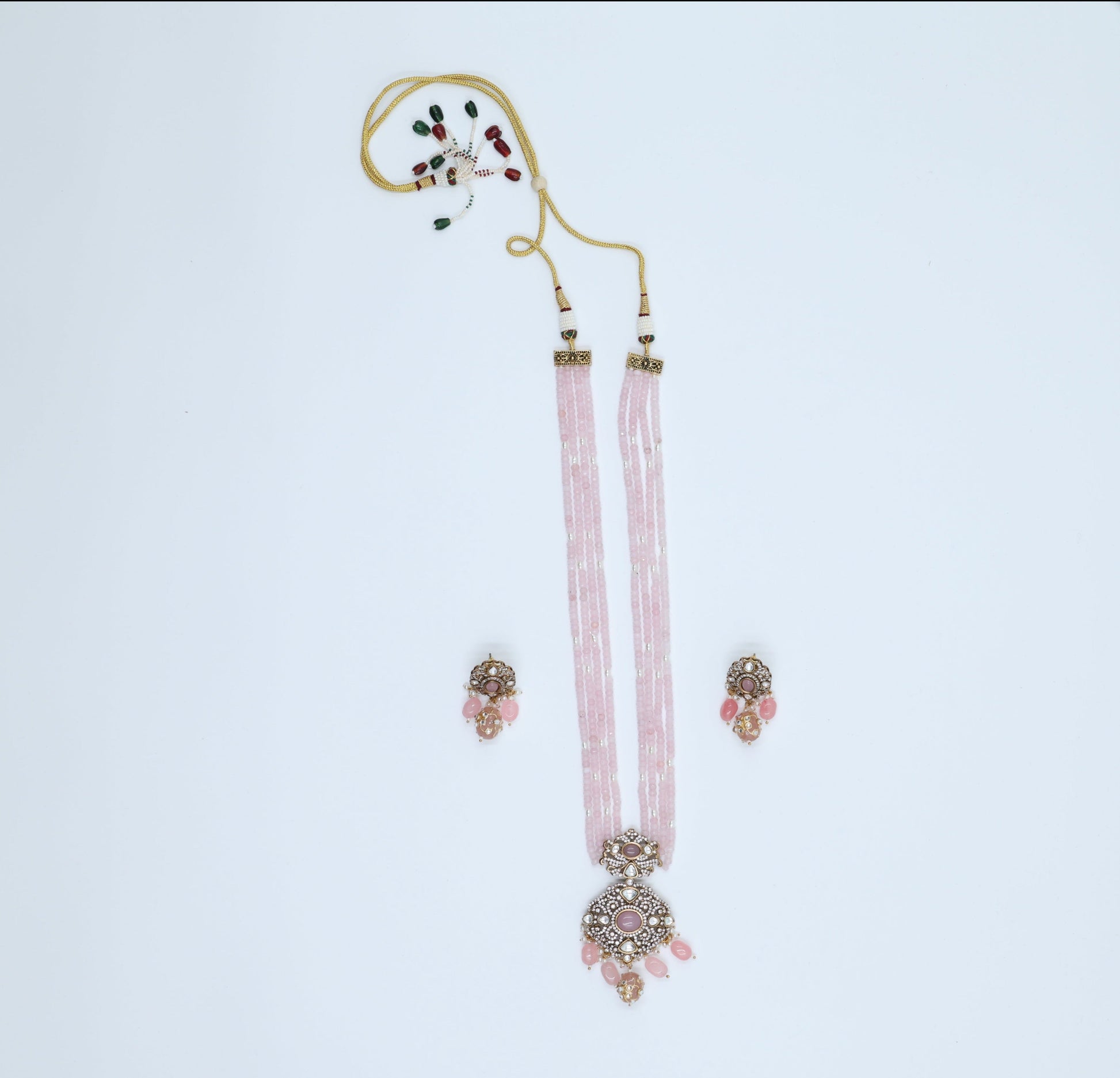 This Kundan Victorian Elegance Set combines traditional and modern styles to create a truly elegant look. The delicate pink color and intricate Kundan design make it perfect for any special occasion. Crafted with high-quality materials, this set exudes sophistication and grace. Elevate your style with this stunning piece.