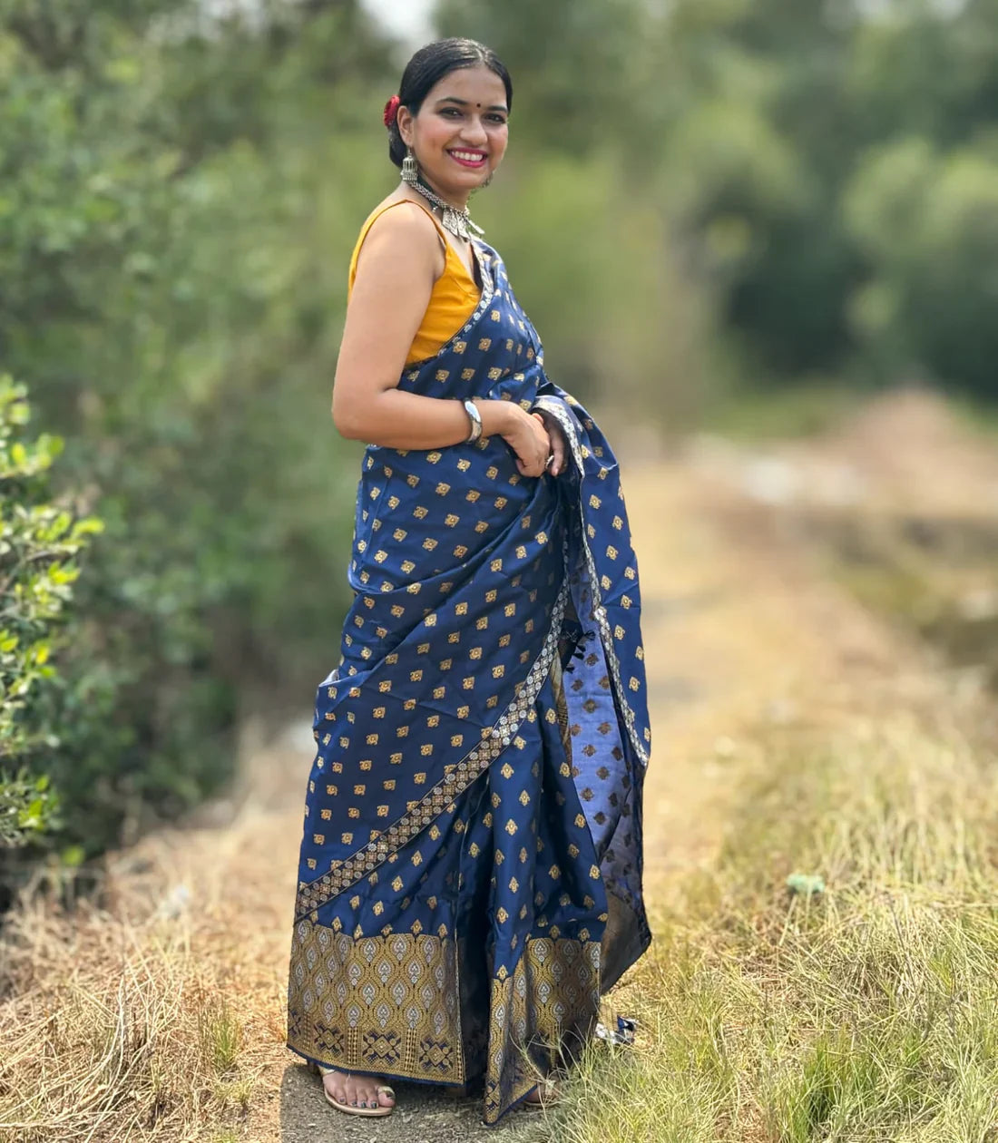 Blouse Piece: Yes, the Mekhela Chador comes with a running blouse fabric