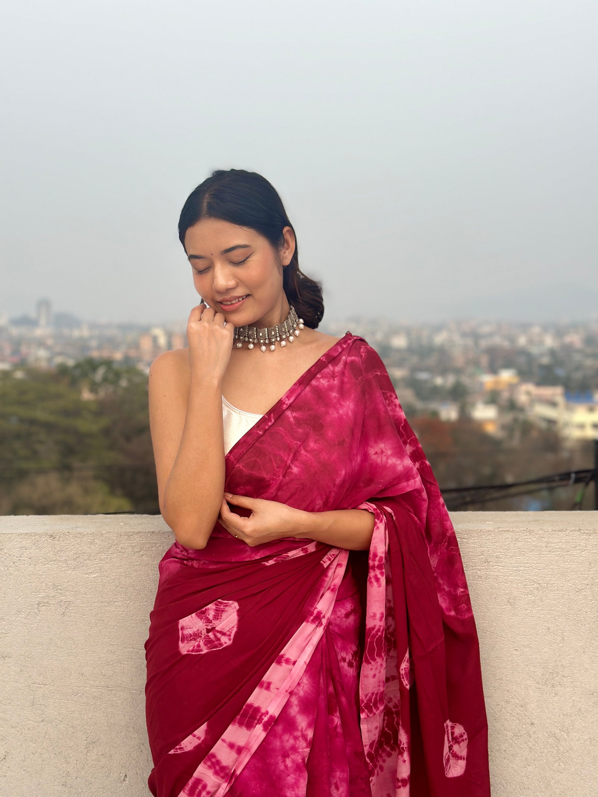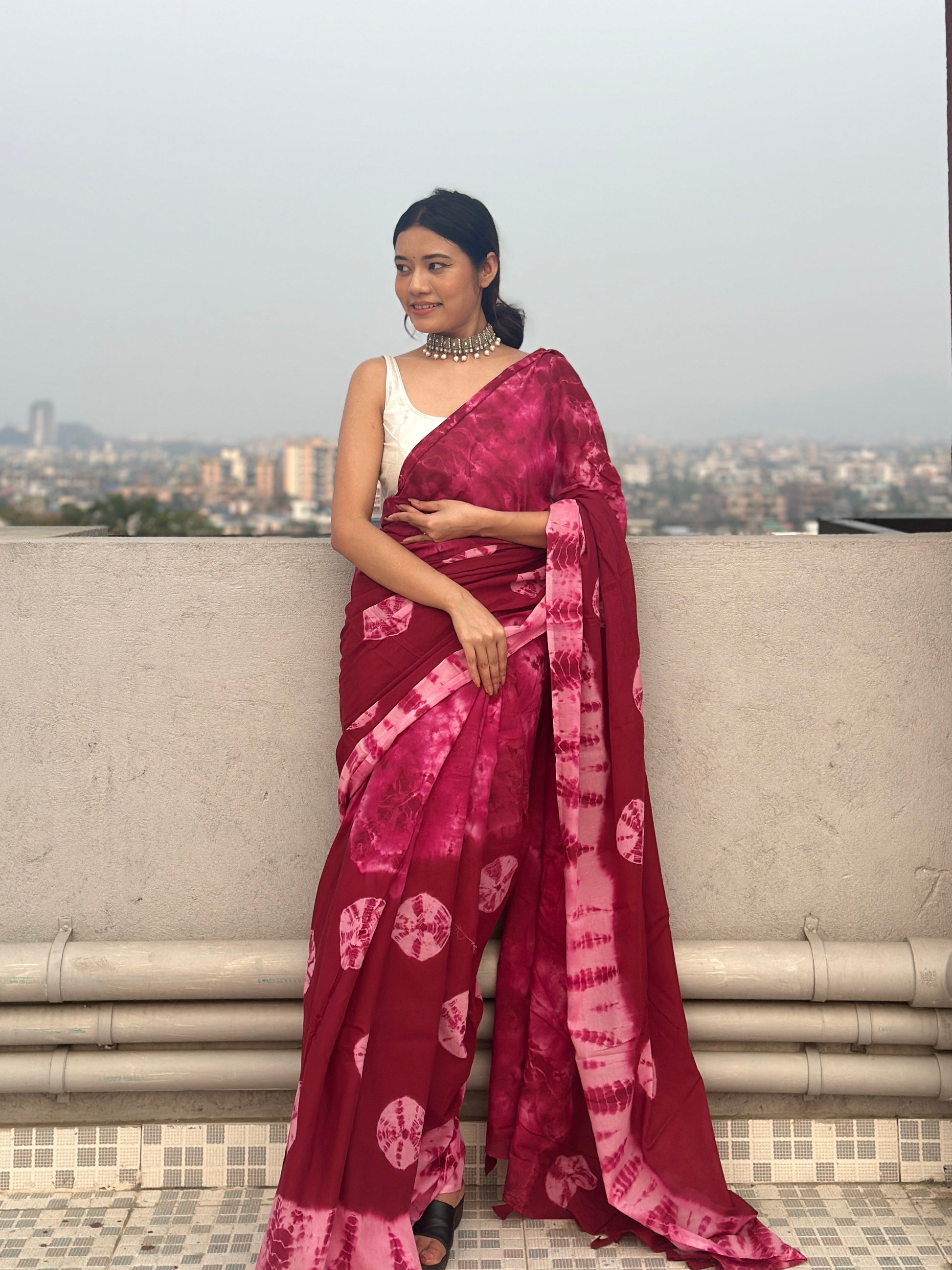 Bandani - Red Tie & Dye Shibori Print Natural Dyed - Mulmul Cotton Saree