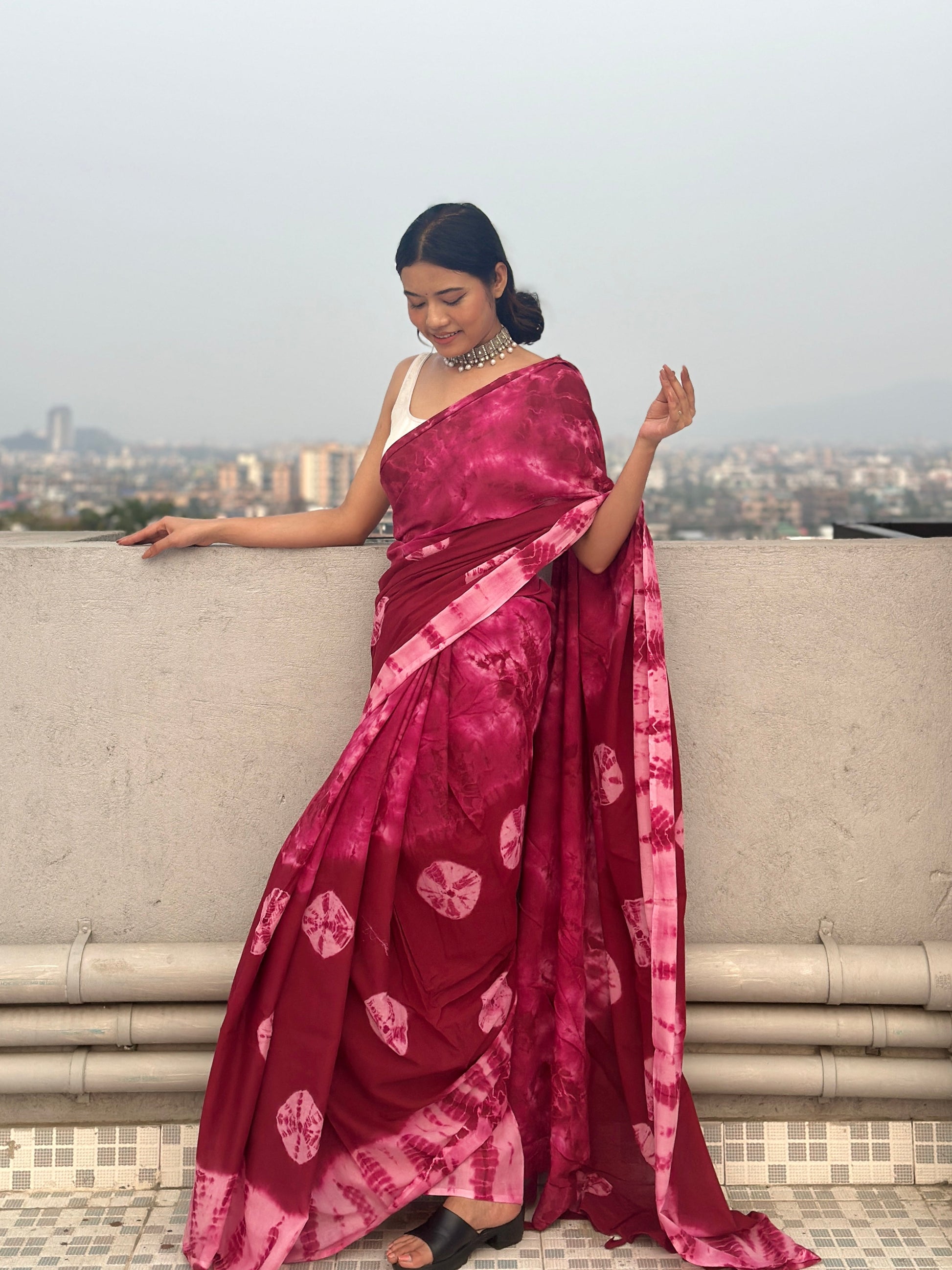 A tie and dye saree is a must-have addition to your wardrobe, embodying the essence of vibrant artistry. With its intricate patterns and bold colors, it breathes life into your attire. The unique tie and dye technique creates mesmerizing designs, where each saree becomes a one-of-a-kind masterpiece. Whether it's the classic bandhani or the contemporary Shibori, a tie and dye saree adds a touch of elegance and playfulness to any occasion. It's a versatile and timeless choice that effortlessly enhances your personal style, making it an essential saree for every fashion enthusiast.