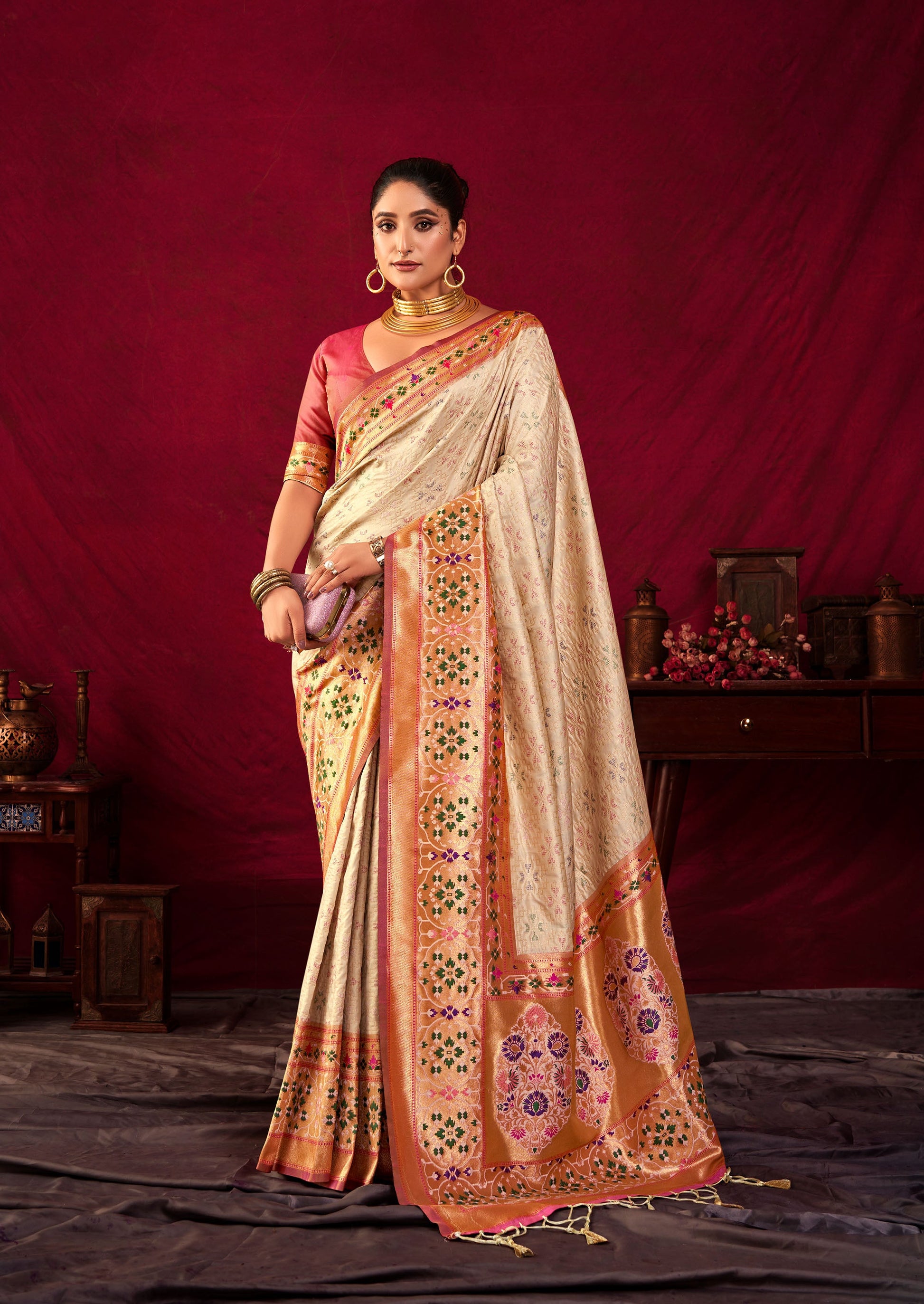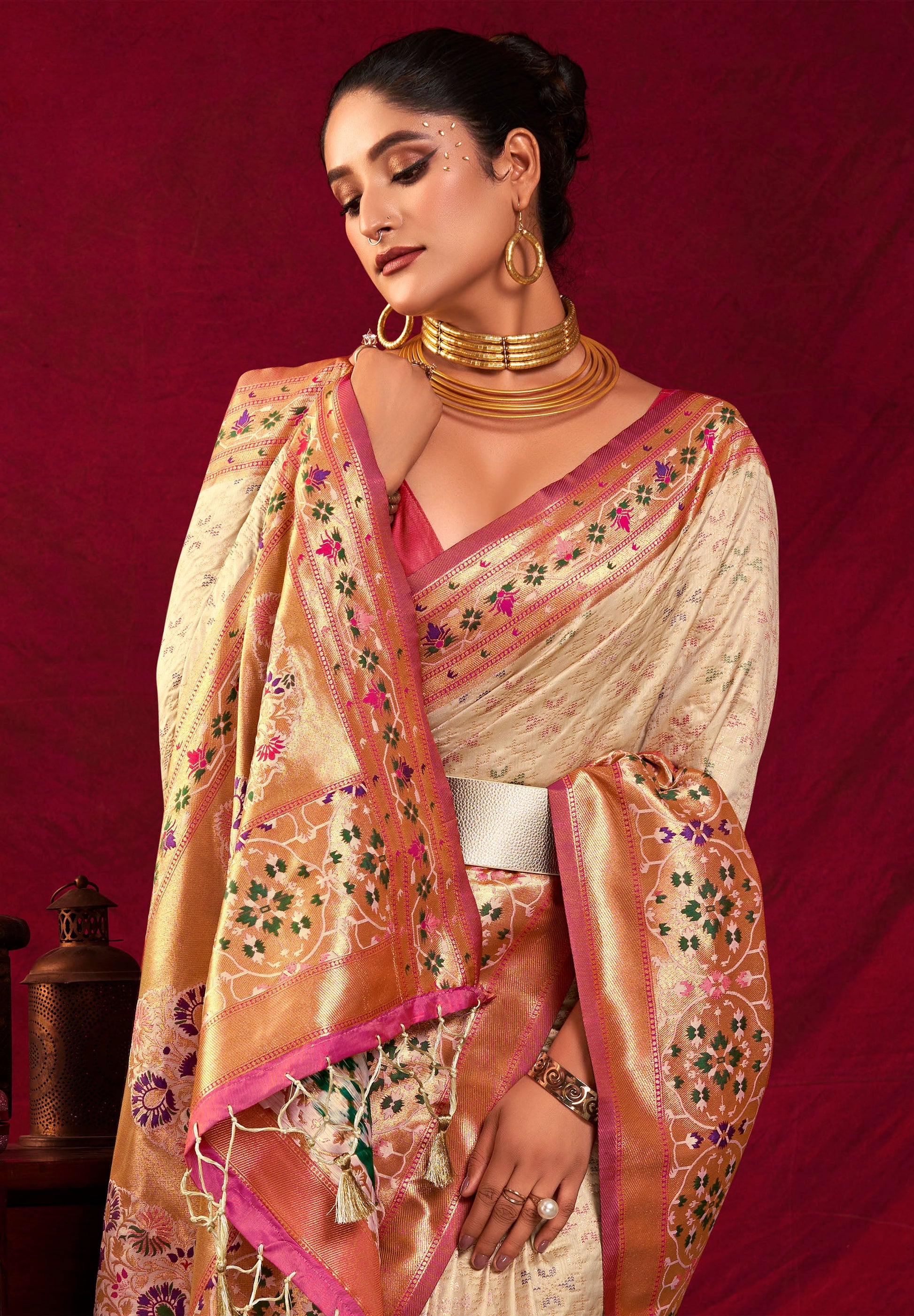 Bansi Cream Paithani Silk Meenakari weaves Zari Saree
