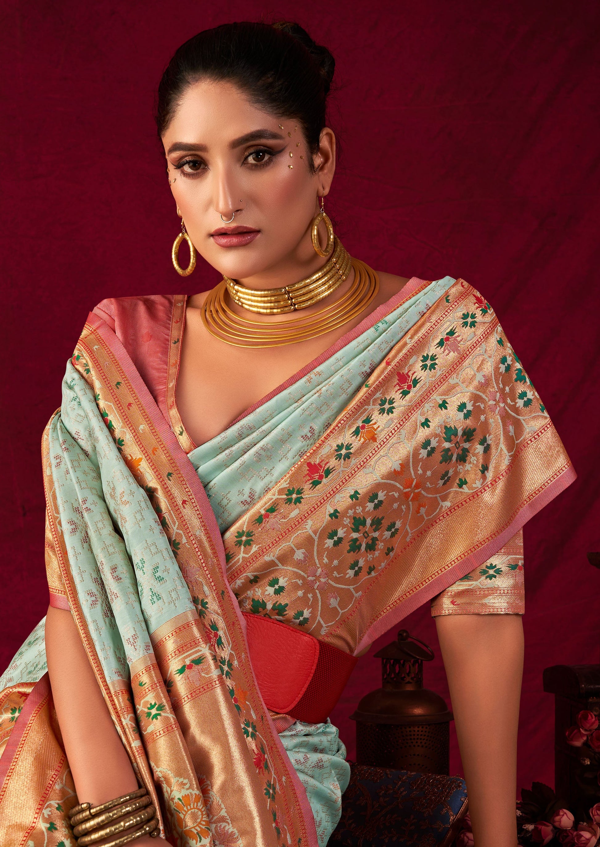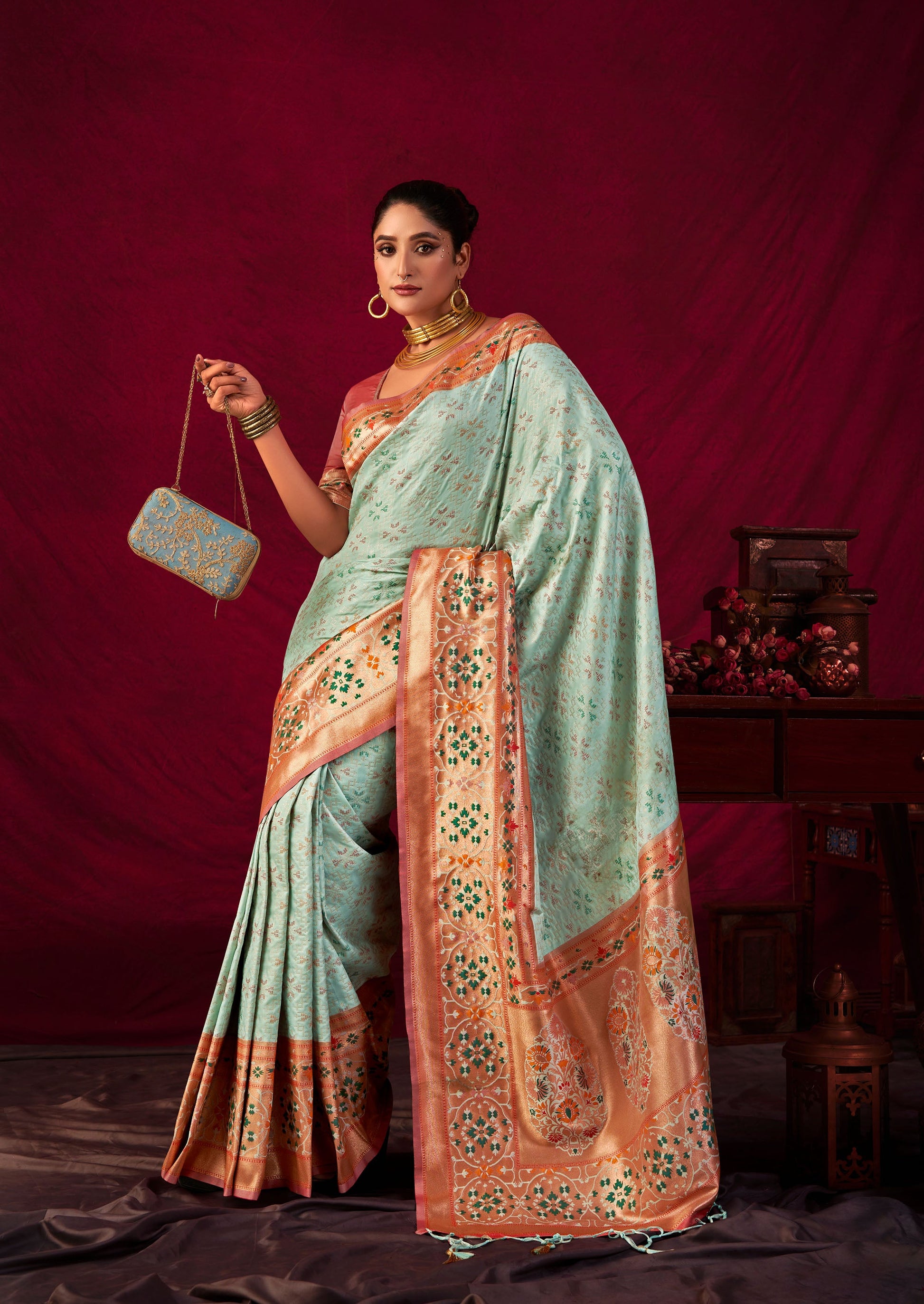 Bansi Sea Green Paithani Silk Meenakari weaves Zari Saree
