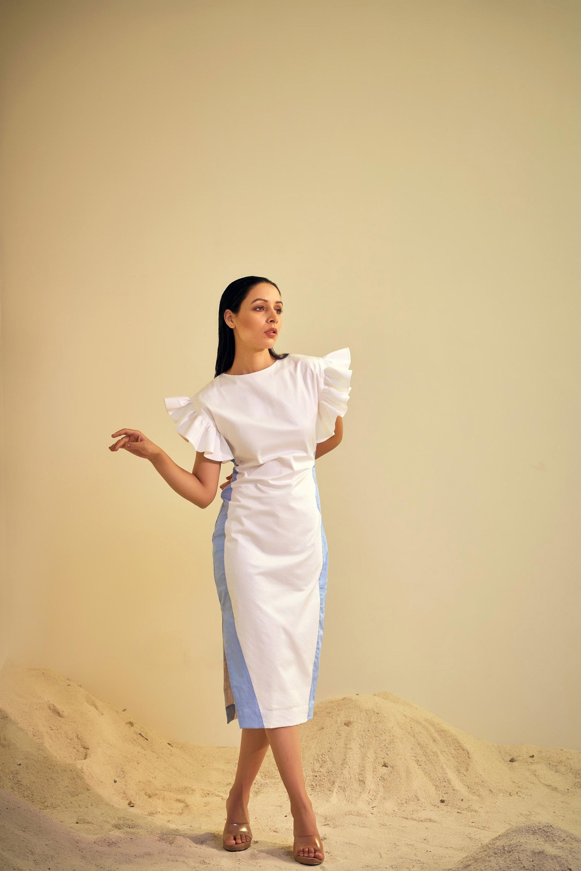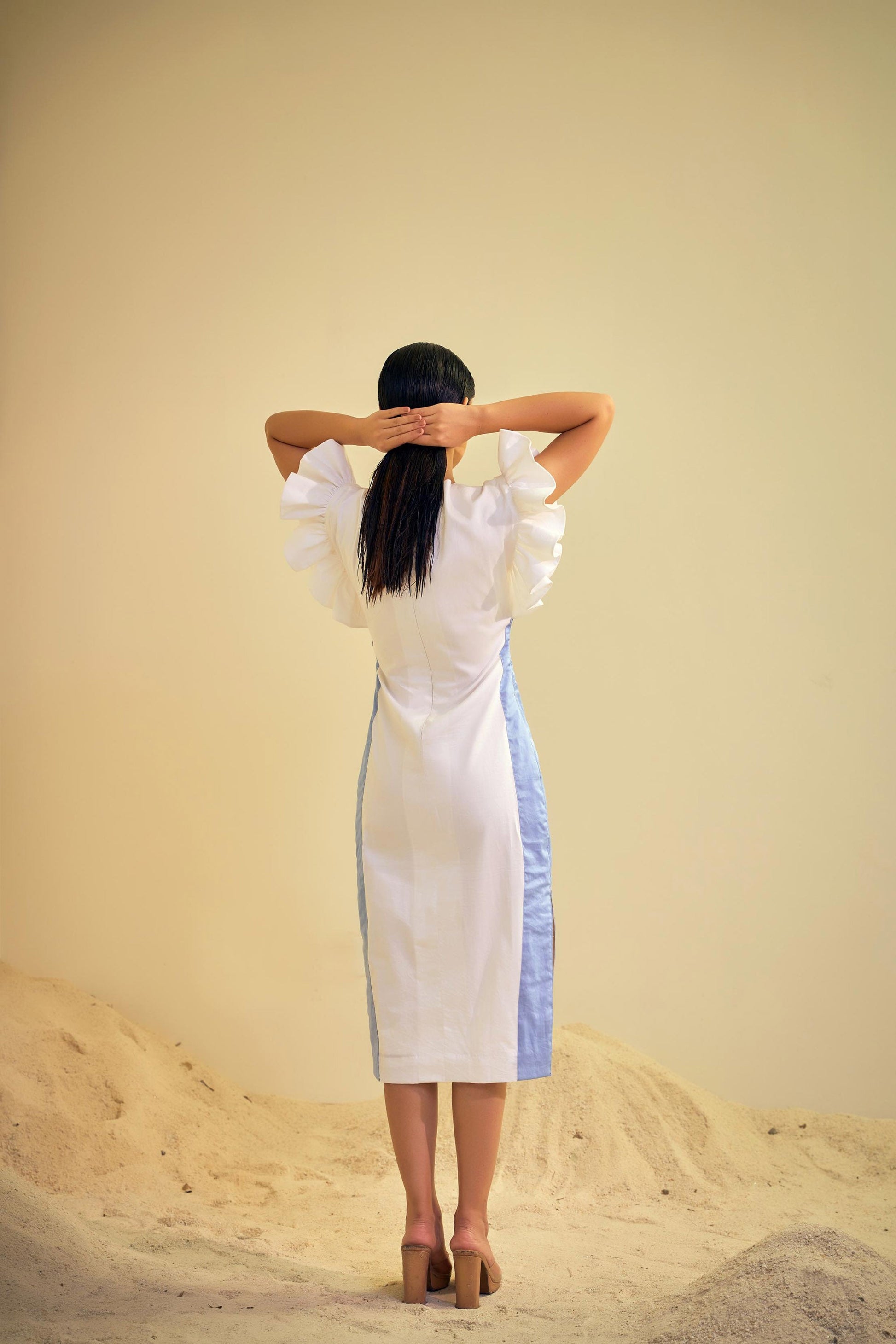 Bay is a color block bodycon dress with a side slit and back zipper closure. A perfect brunch go- to outfit that can also be transitioned into a formal staple.