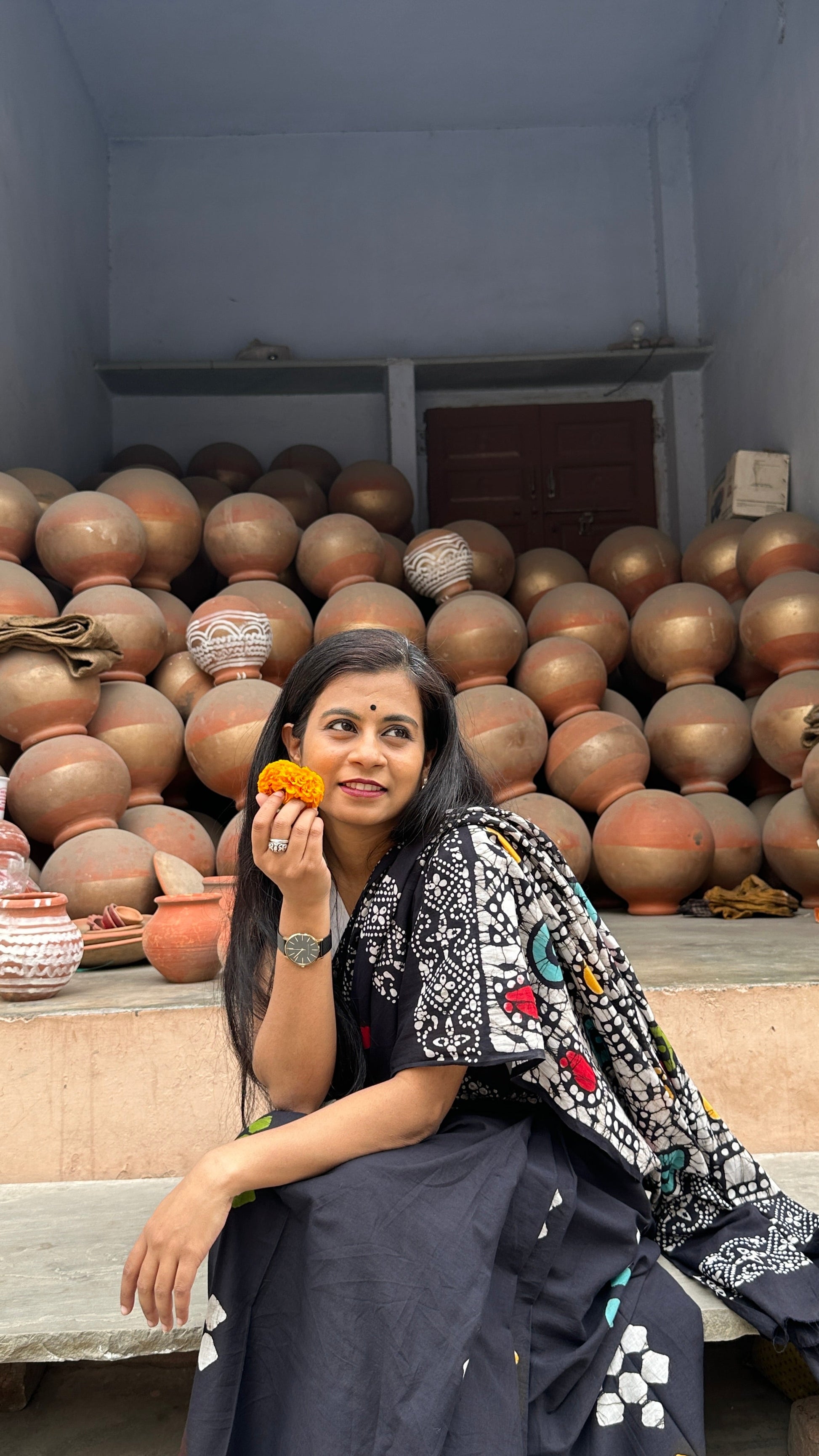 Make a bold fashion statement this summer with the Black Be My Mystery Handblock Print Saree. Designed for the Sassy Summer Fit collection, this saree blends traditional craftsmanship with contemporary elegance. Its breathable fabric ensures all-day comfort, while the handcrafted block prints add an artistic flair. Perfect for casual outings, festive evenings, or classy daywear, this saree is a must-have for the modern woman who loves to stand out.