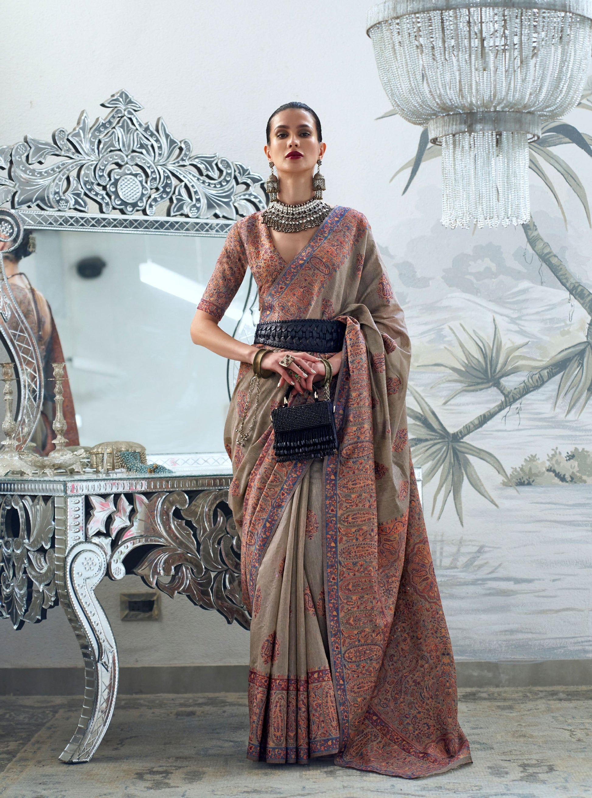 Beieg Brown Kqaalib Kashmiri Handloom saree