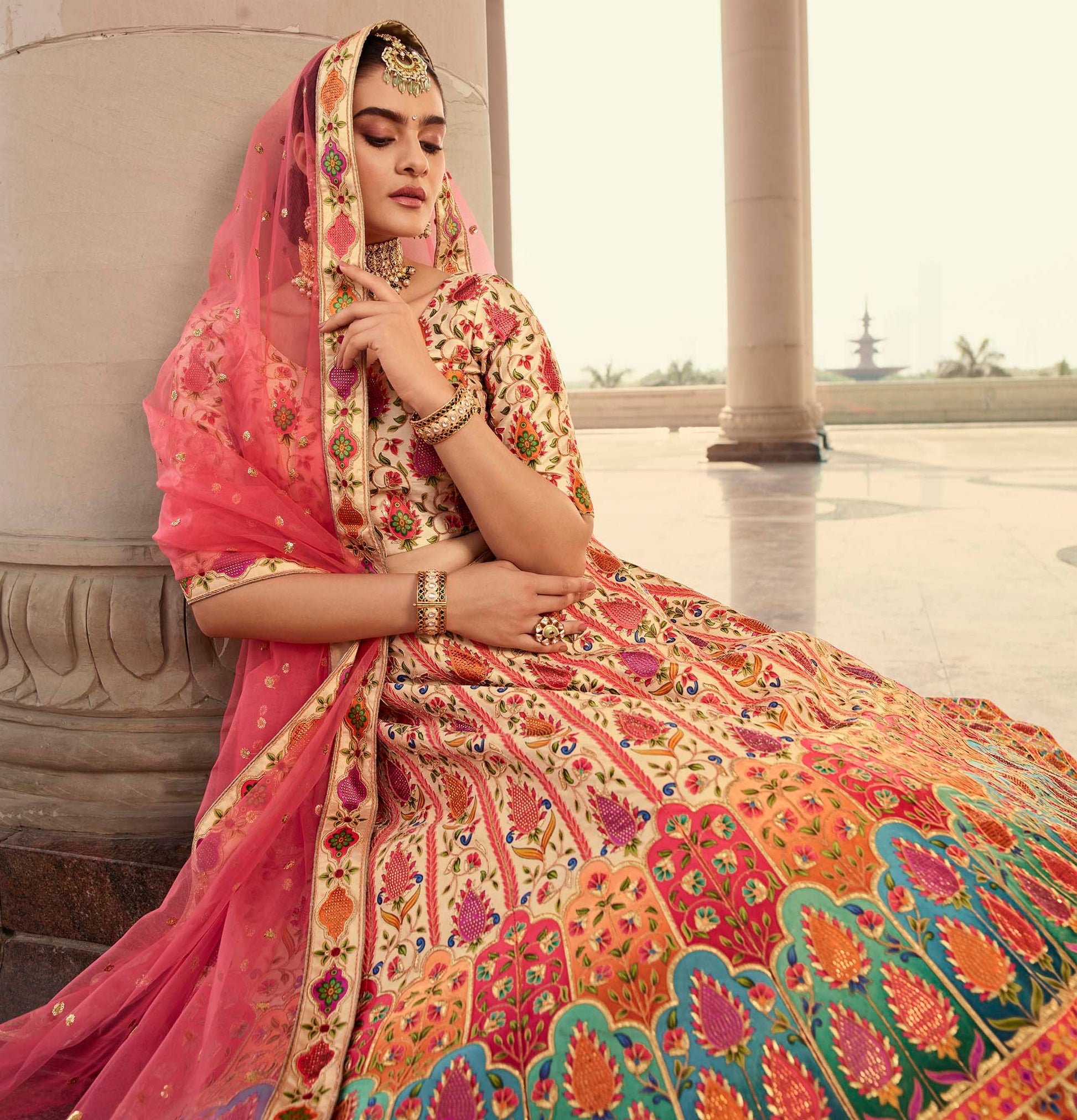 - Lehenga Choli Color: Beige