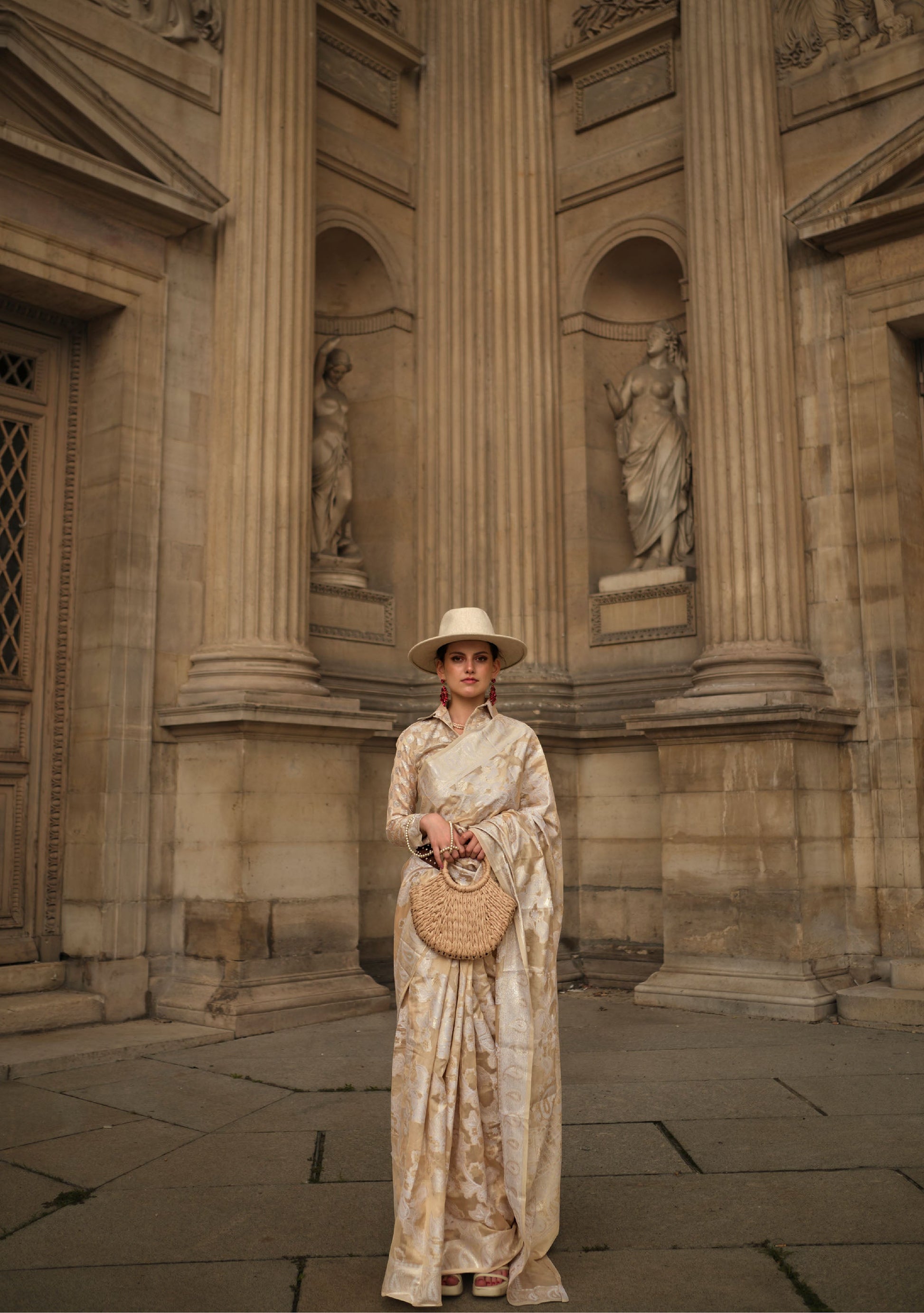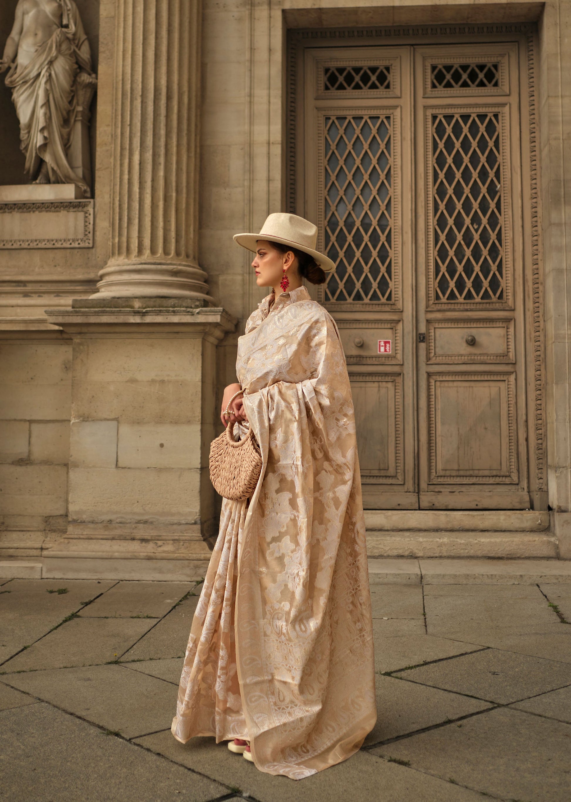 Beige Kaneeza Lucknow Chikankari Zari Saree