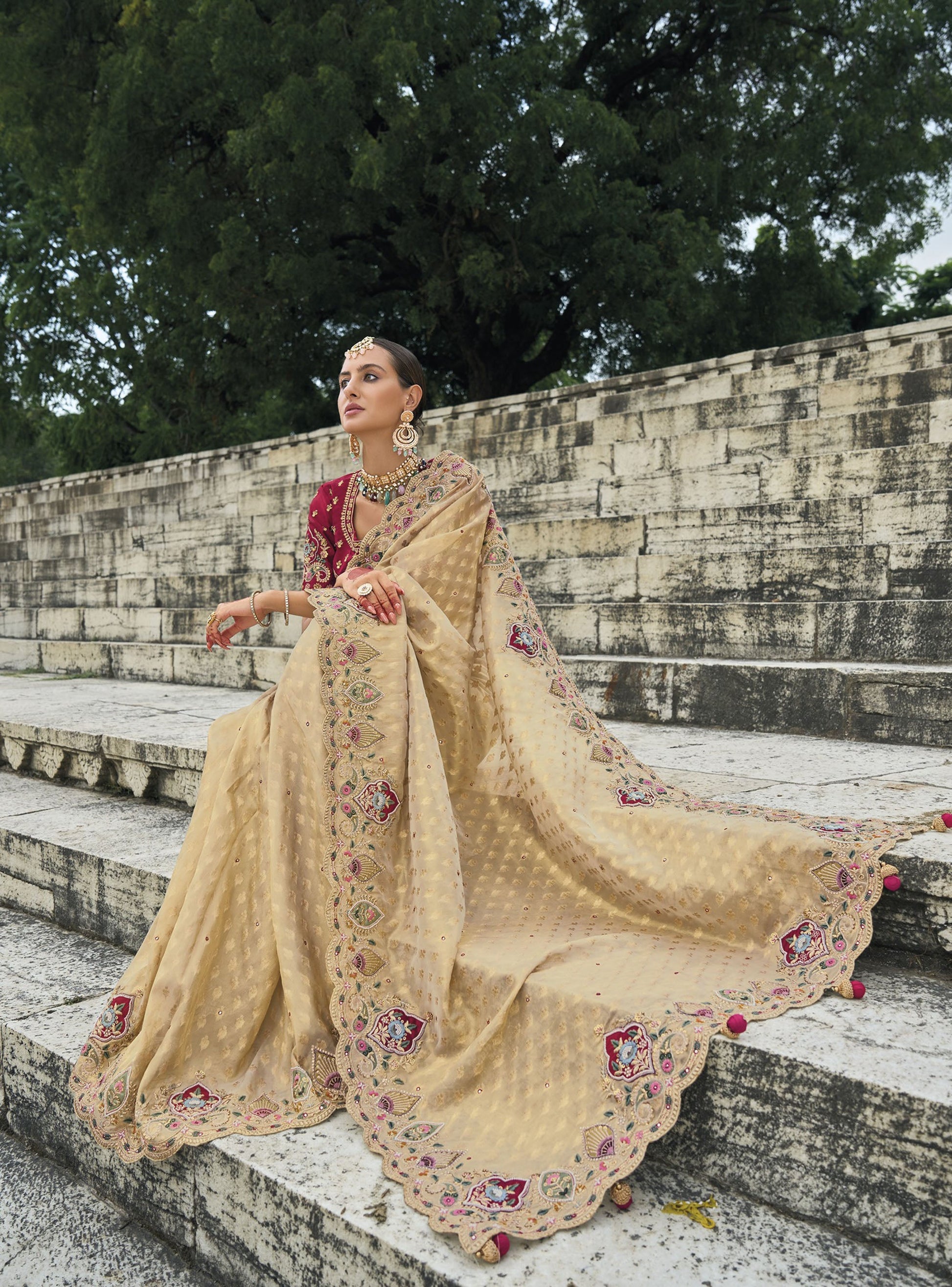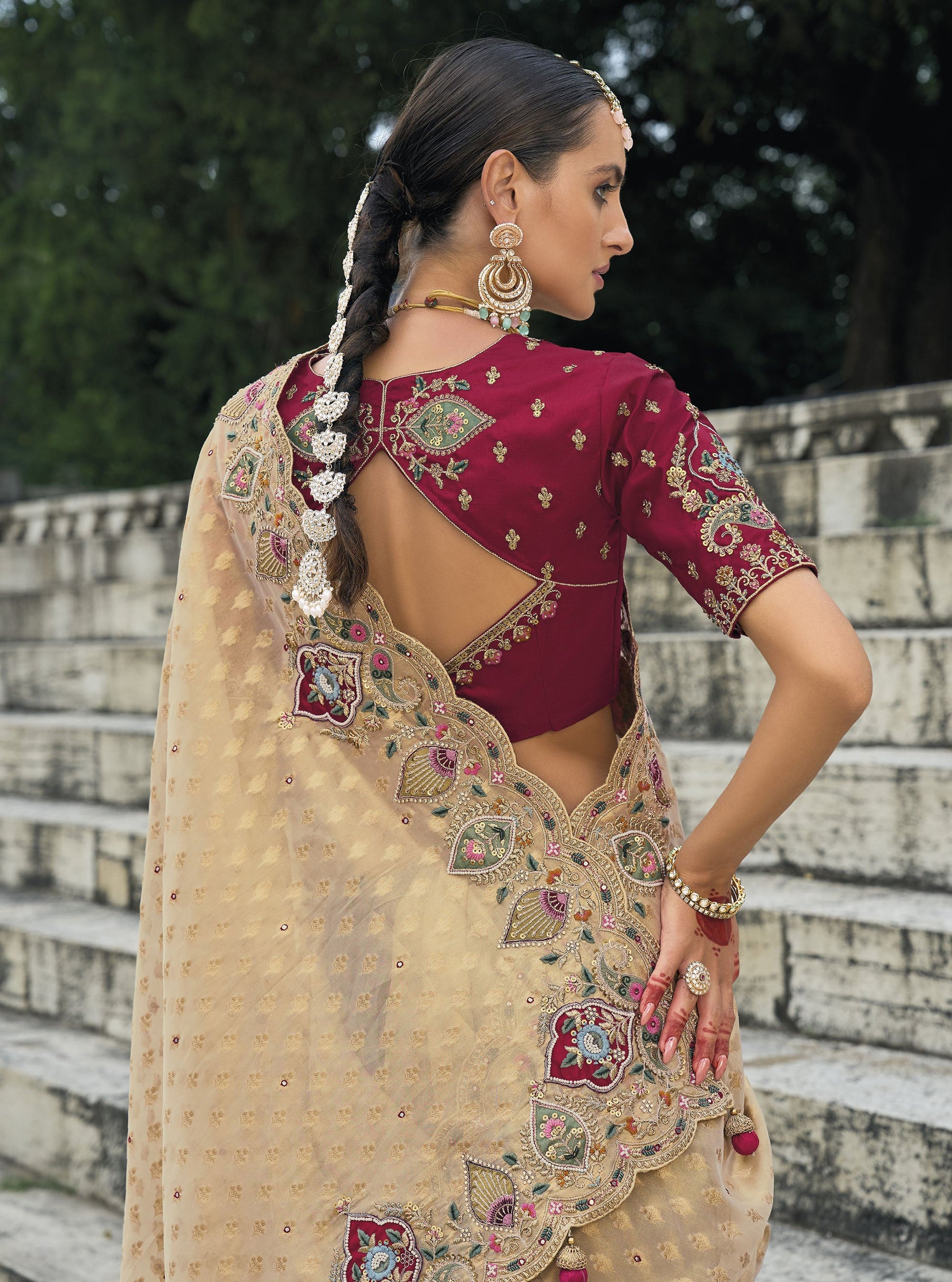- Embroidery: Cutdana work, Zari Embroidered