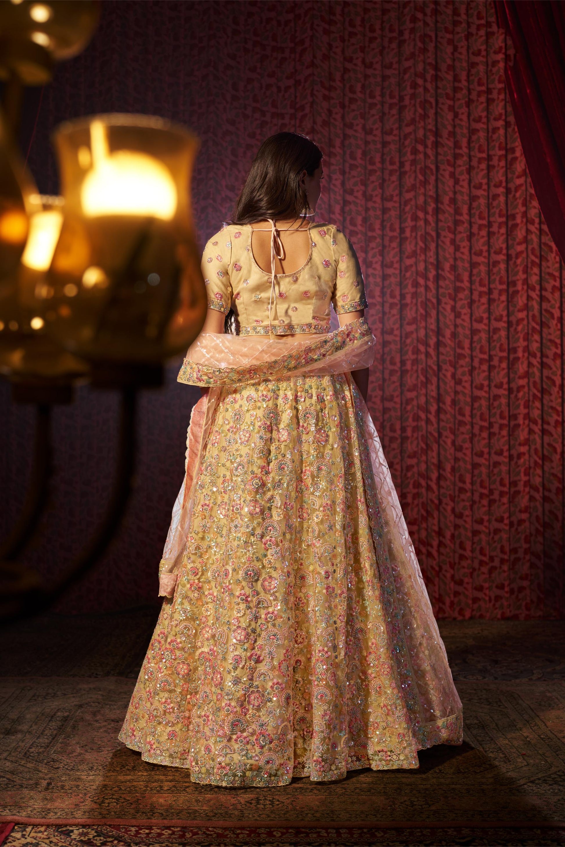 Beige Net Sequins & Zarkan Embroidered Bridal Lehenga