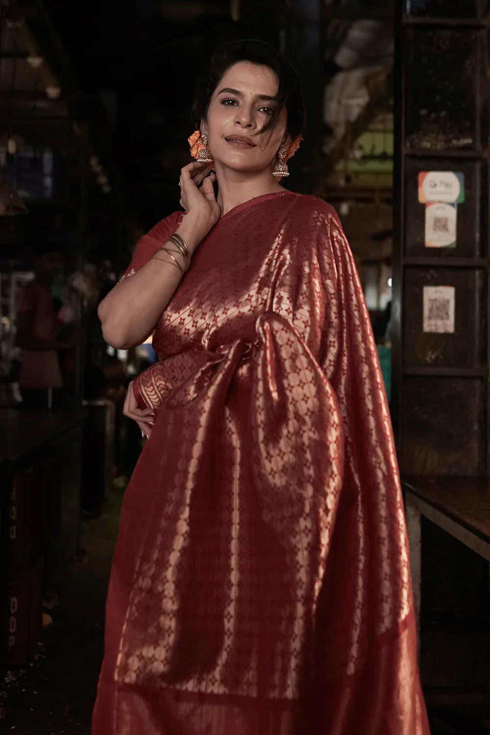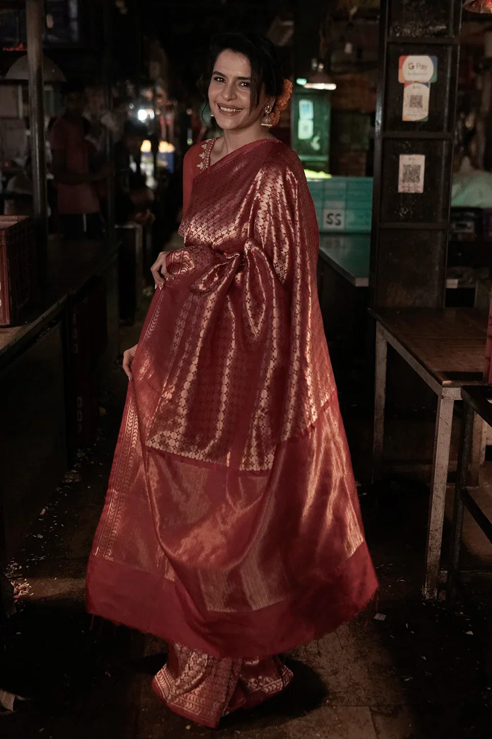 Berry Red Handloom Pure Silk Brocade Banarasi Saree