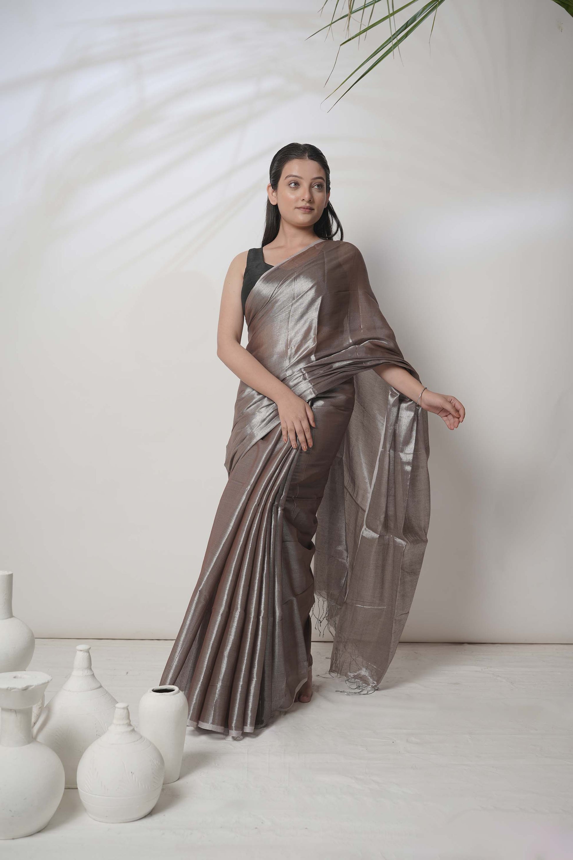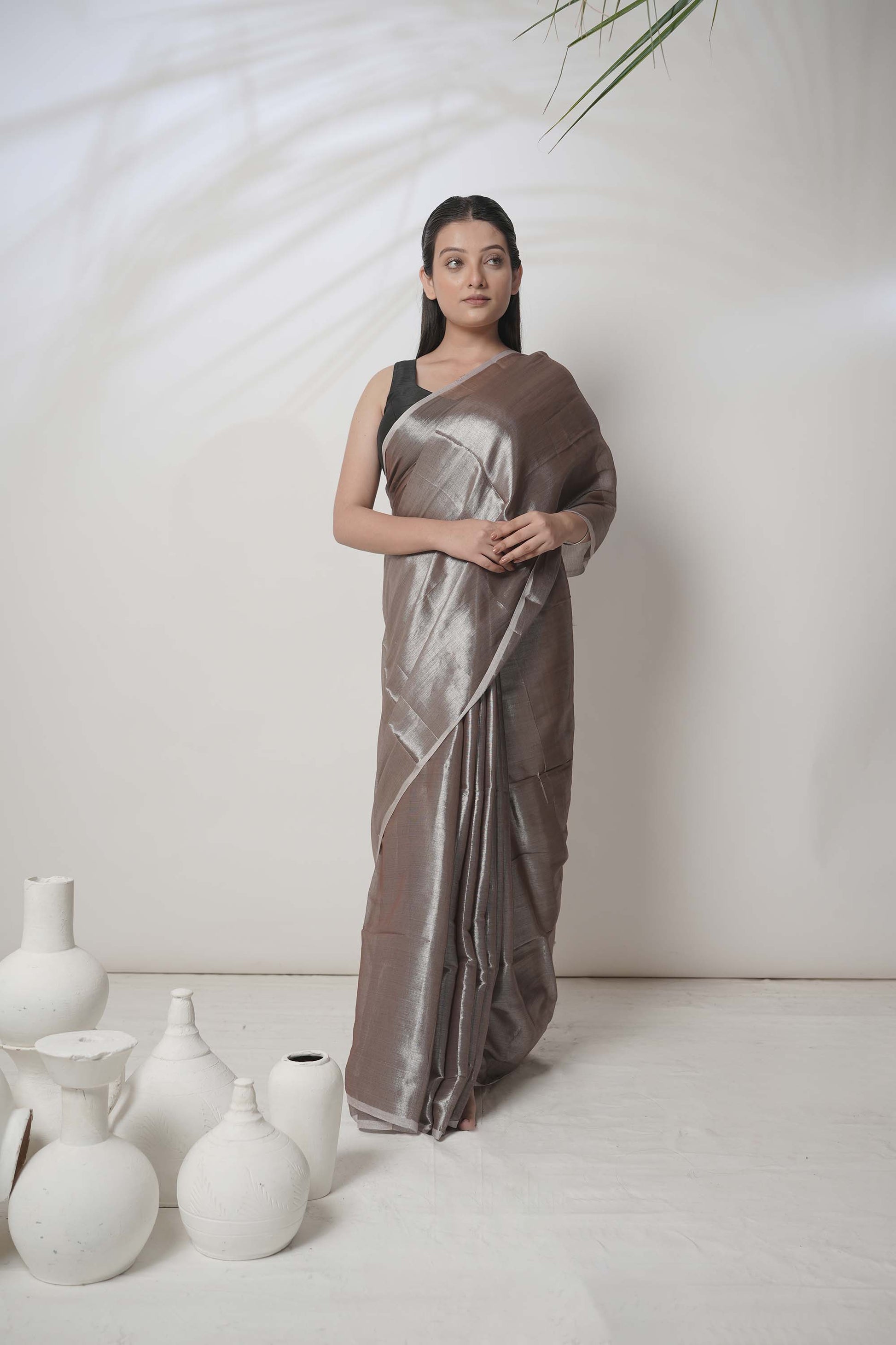 Bhavya | Pastel Coffee Handloom Tissue saree