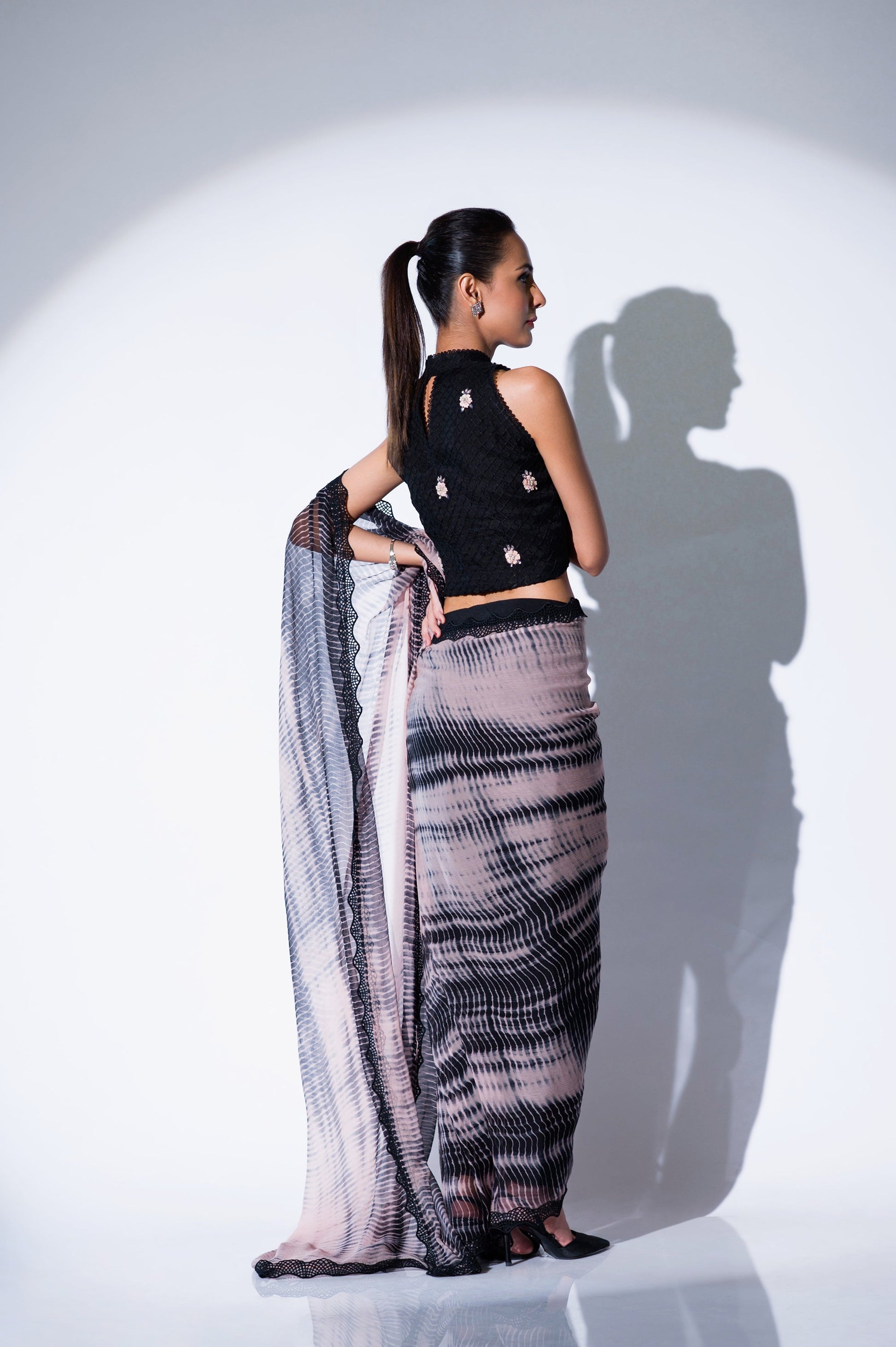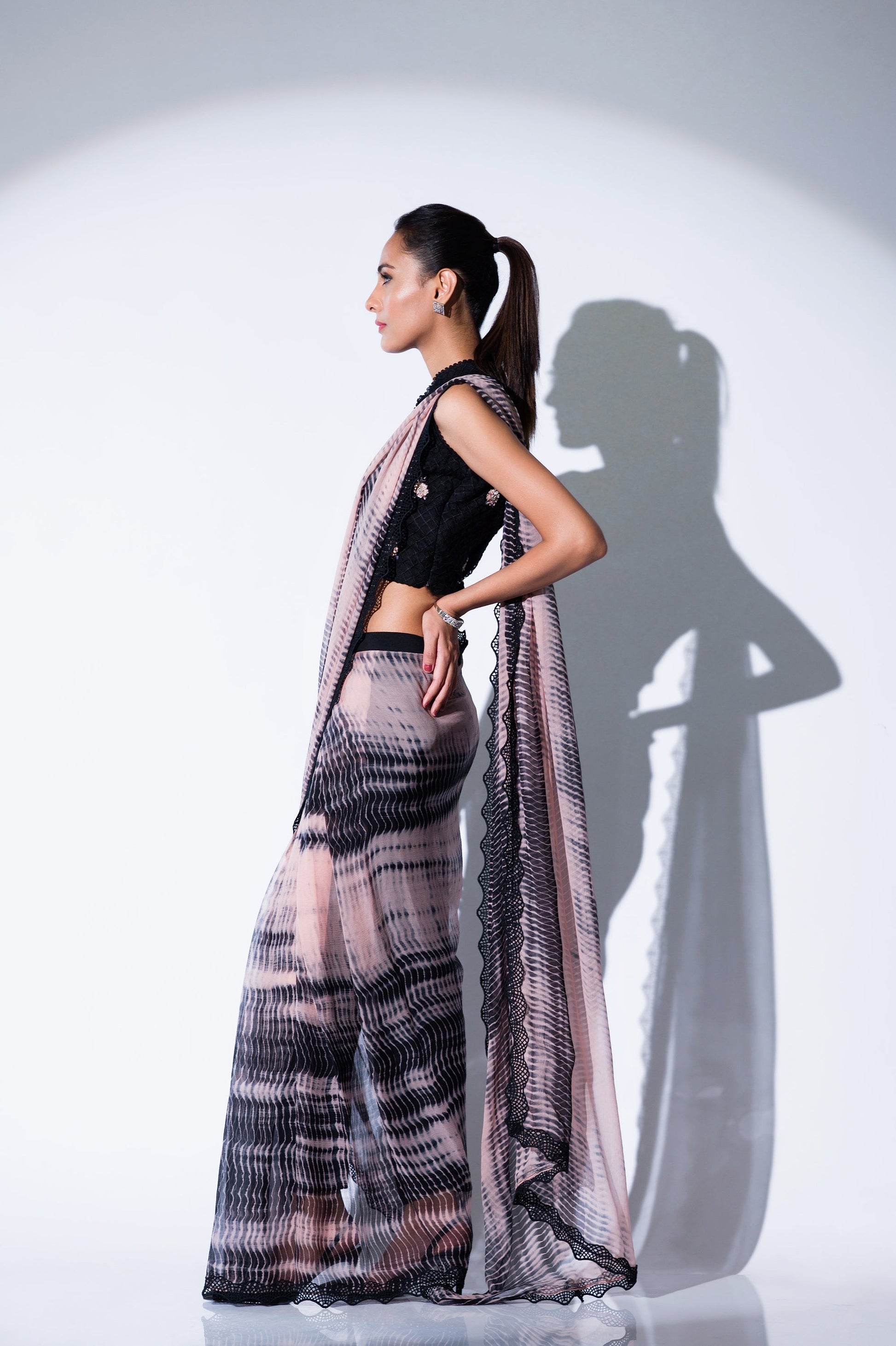Black and Pink Printed Chiffon Saree for Cocktail Party