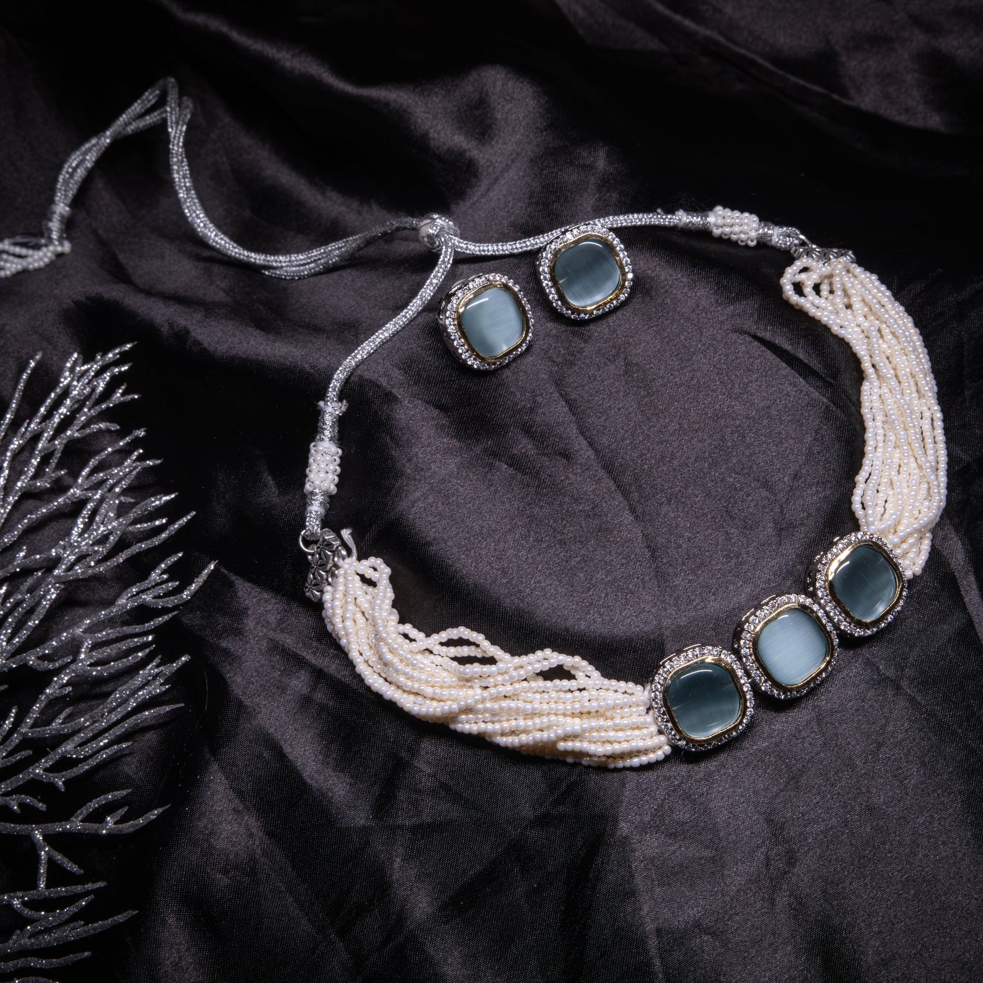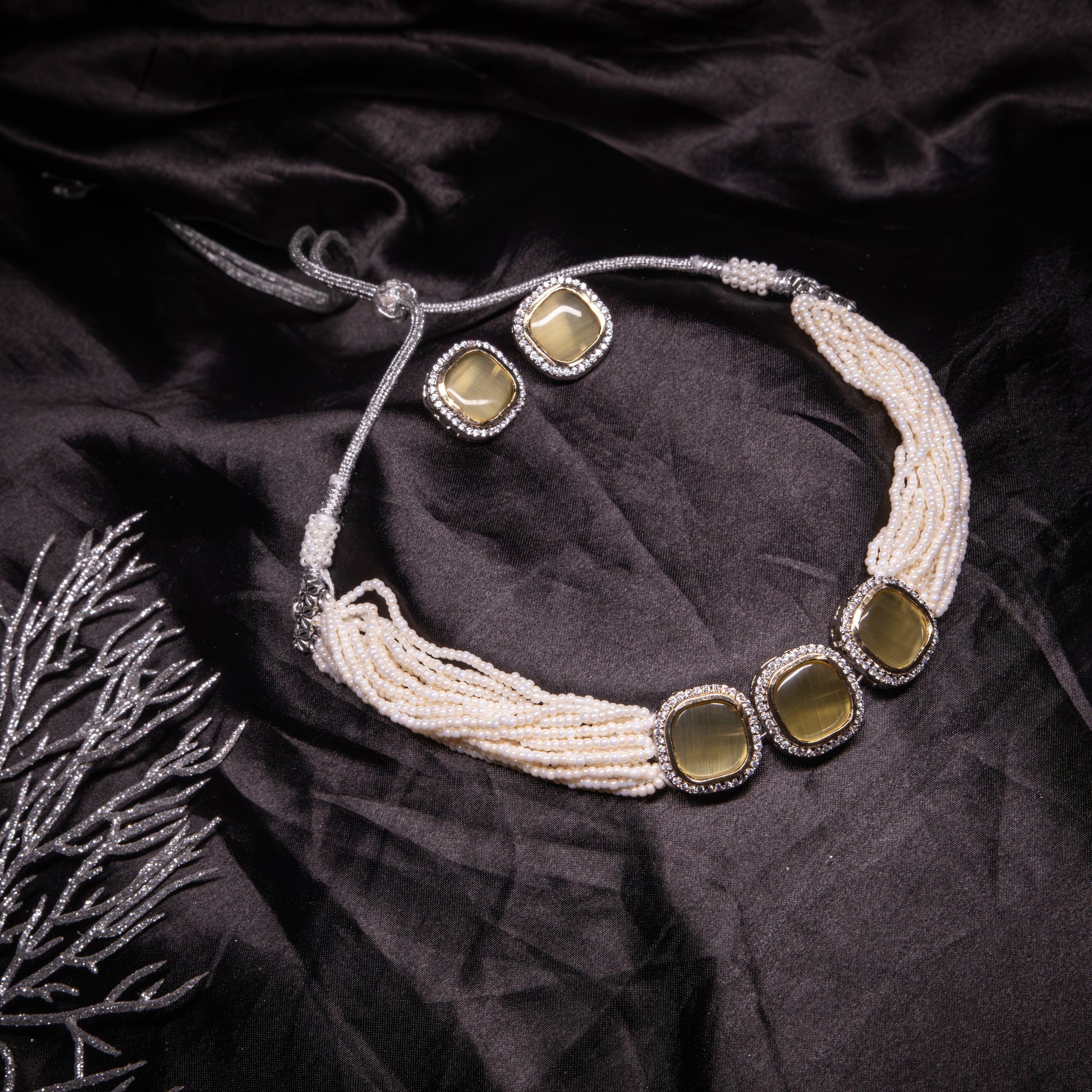 Pearl Choker with Statement Earrings