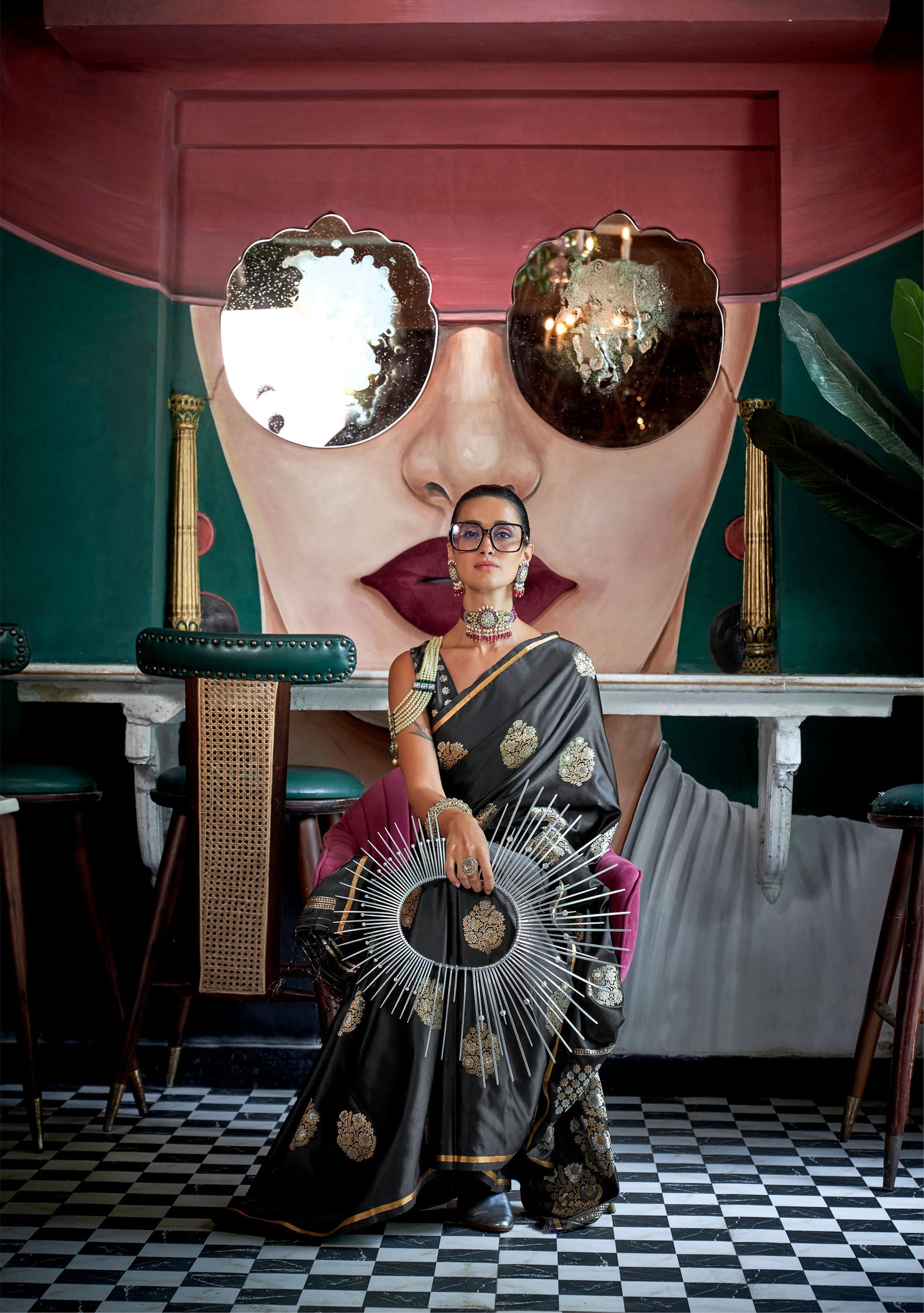 Black Kanthkala Topaz Pure Satin Handloom Saree