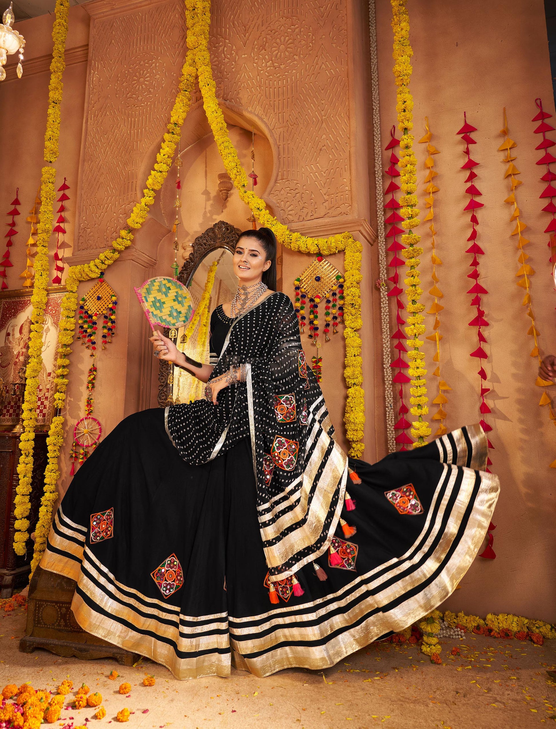 Black Viscose Rayon Hand Mirror Embroidery Navratri Chaniya Choli