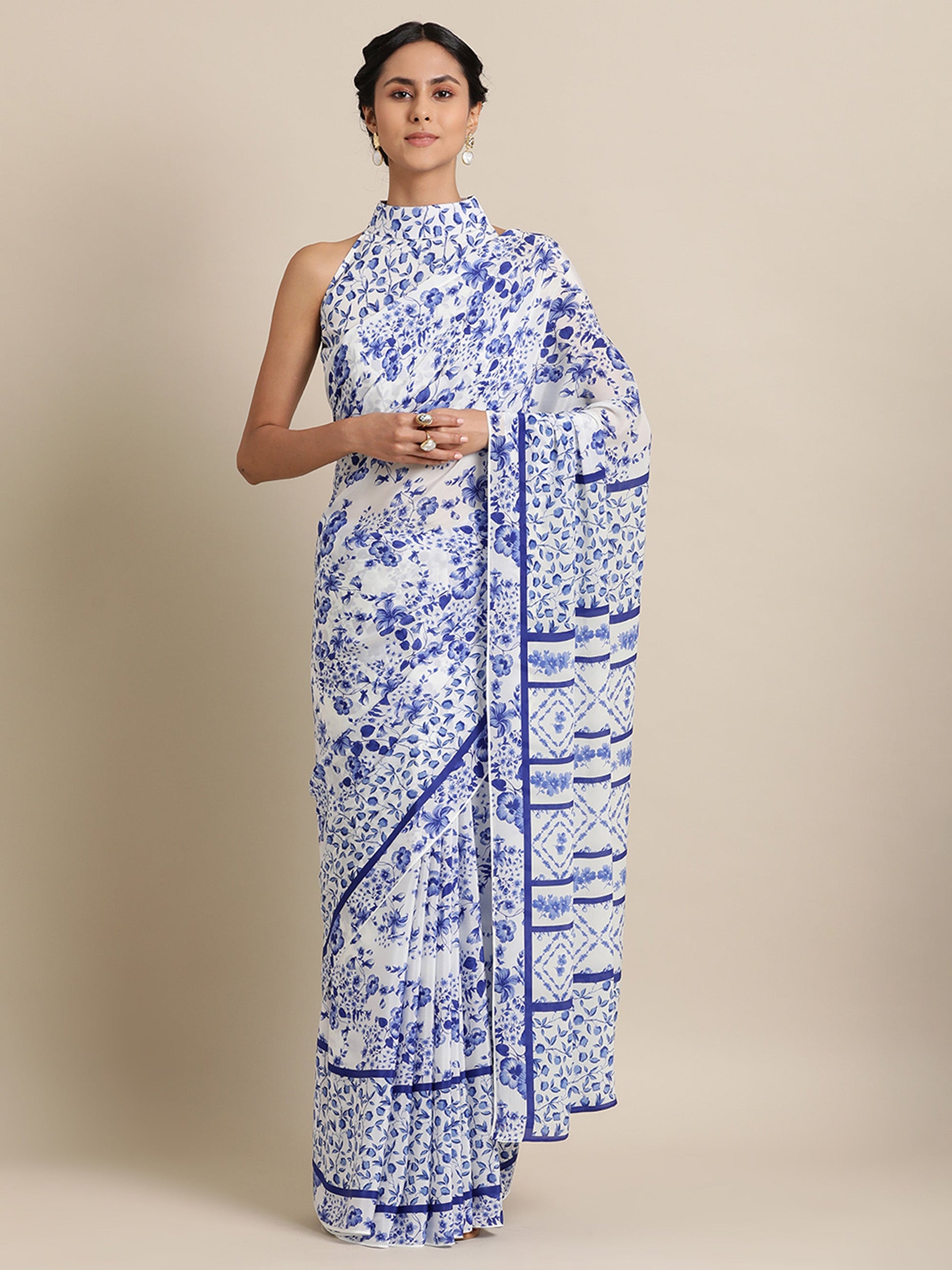 Experience the beauty of designer sarees without breaking the bank. Explore our collection of affordable luxury sarees, featuring intricate craftsmanship and exquisite designs. Trendy Print Designer sarees .