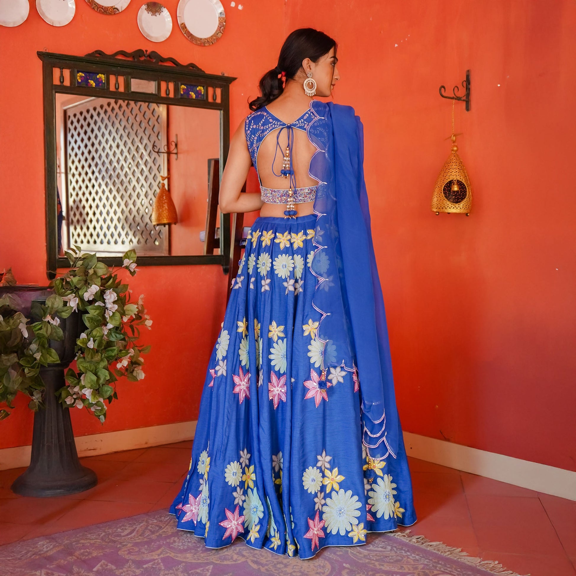 Blue Dola Silk Cut & Hand Work Designer Lehanga
