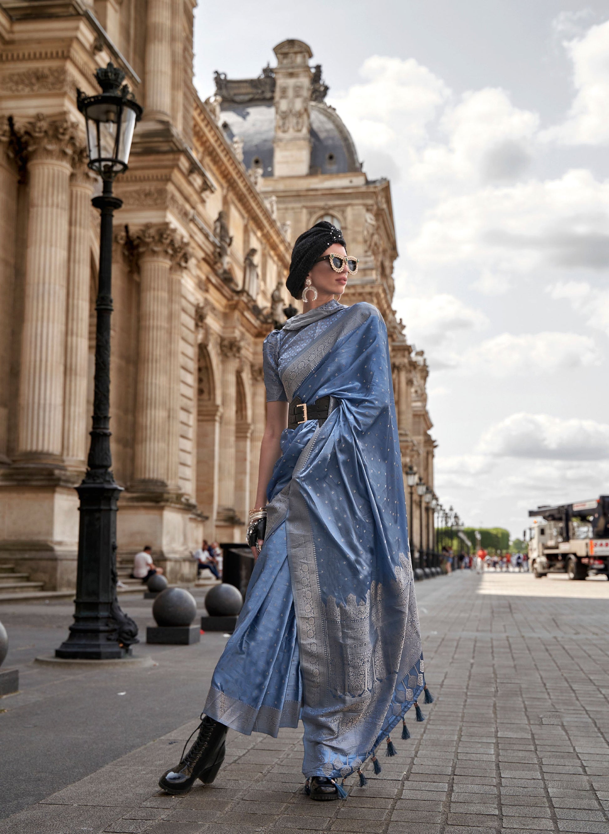 Blue Kamzah Silk Pure Satin Nylon Handloom saree