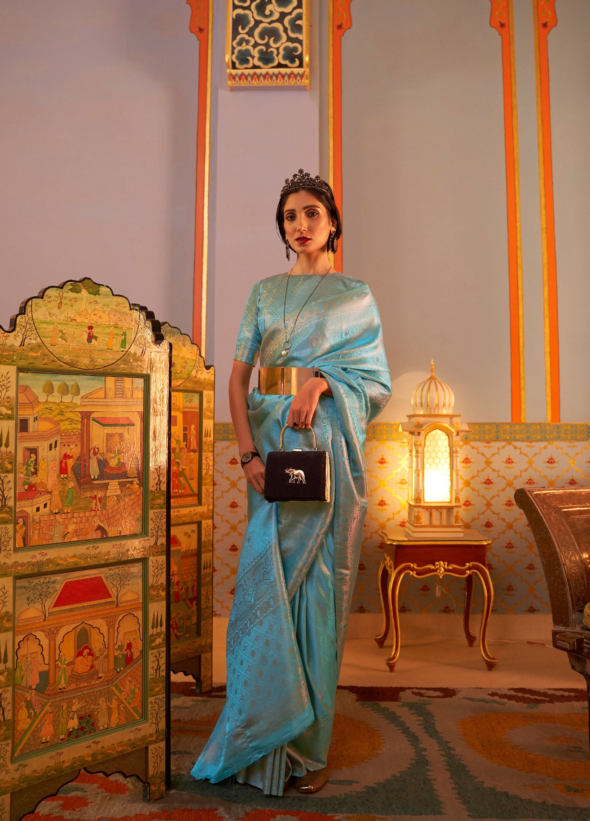 Blue Kanupama Silk Nylon Satin Woven Saree