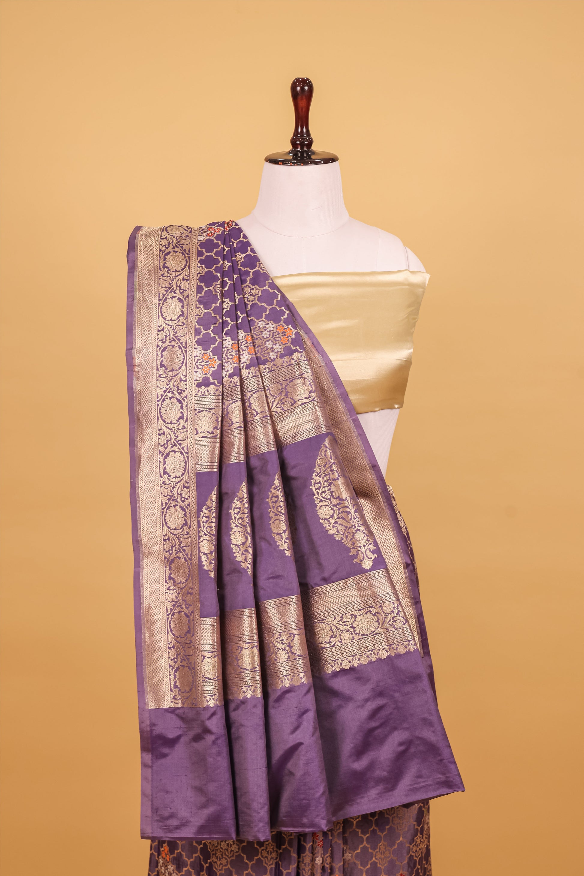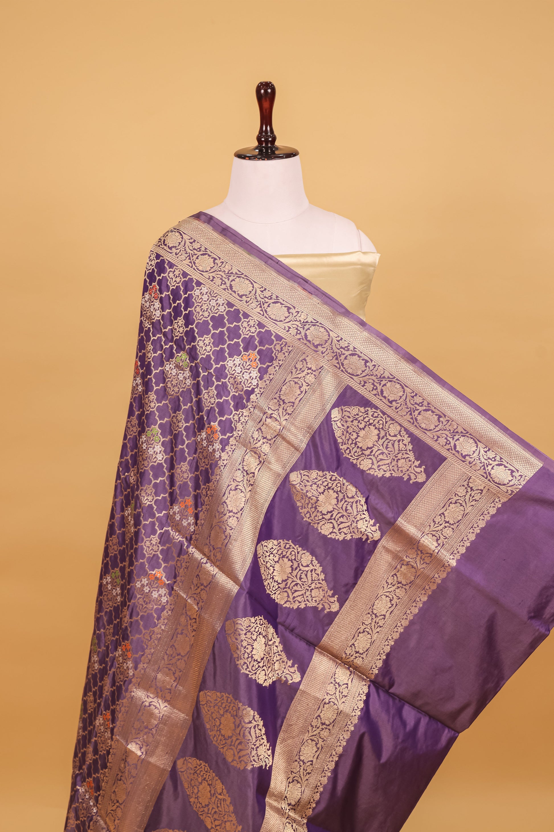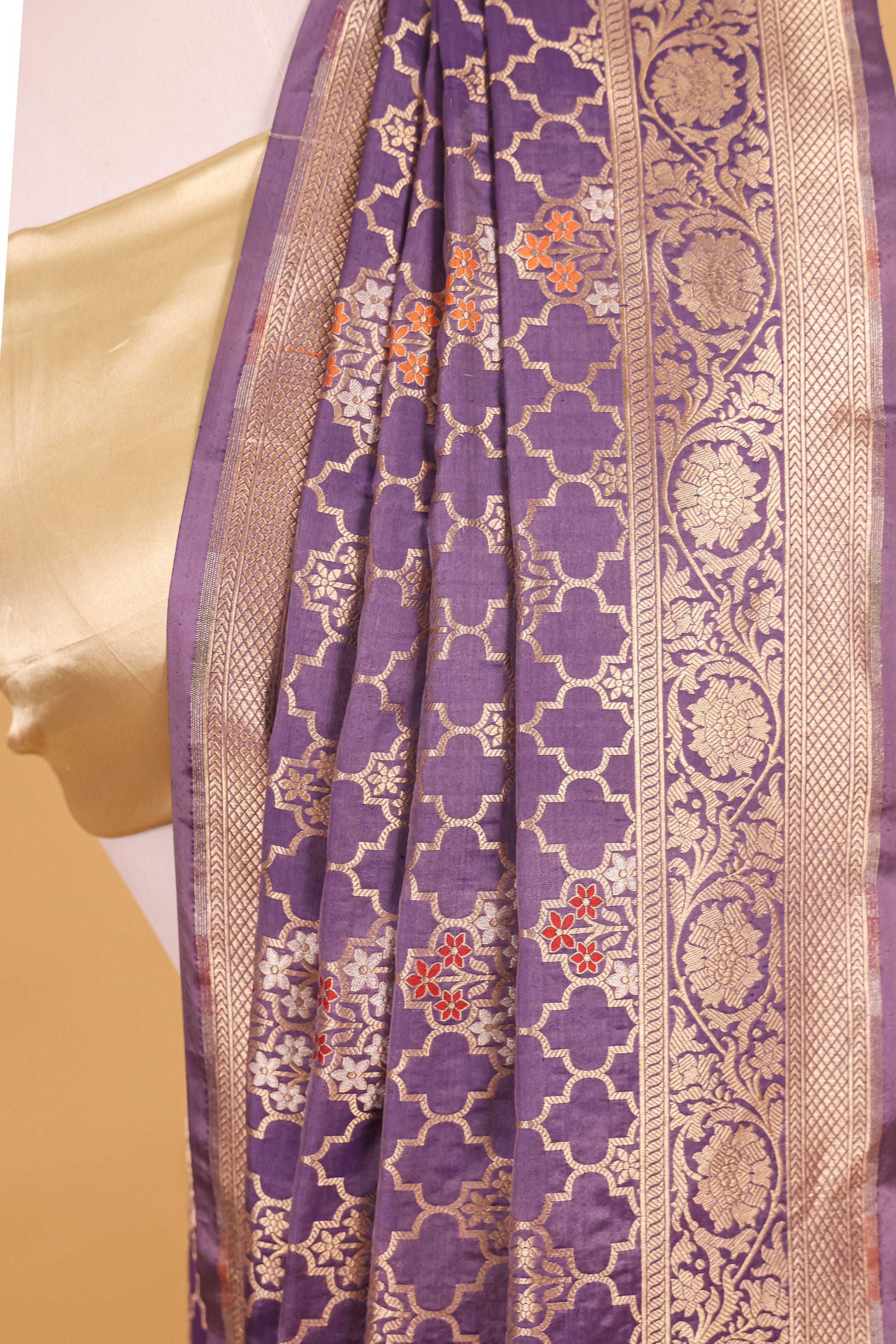 - Description: Jangla pattern with tilfi meena work and banarasi border and aachal