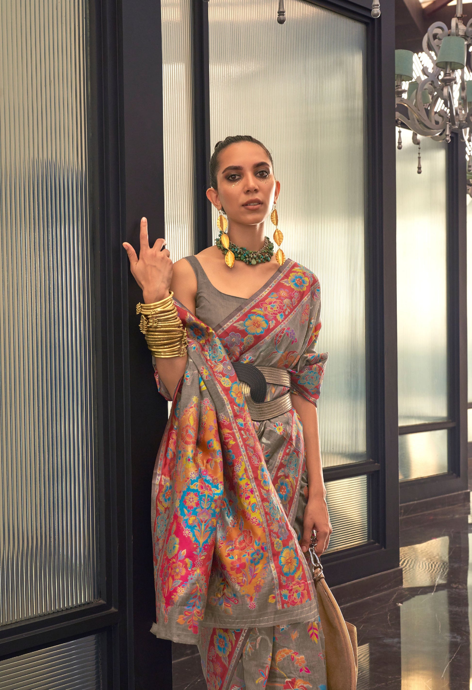 Brown Kabira Kashmiri Modal Handloom Silk Saree