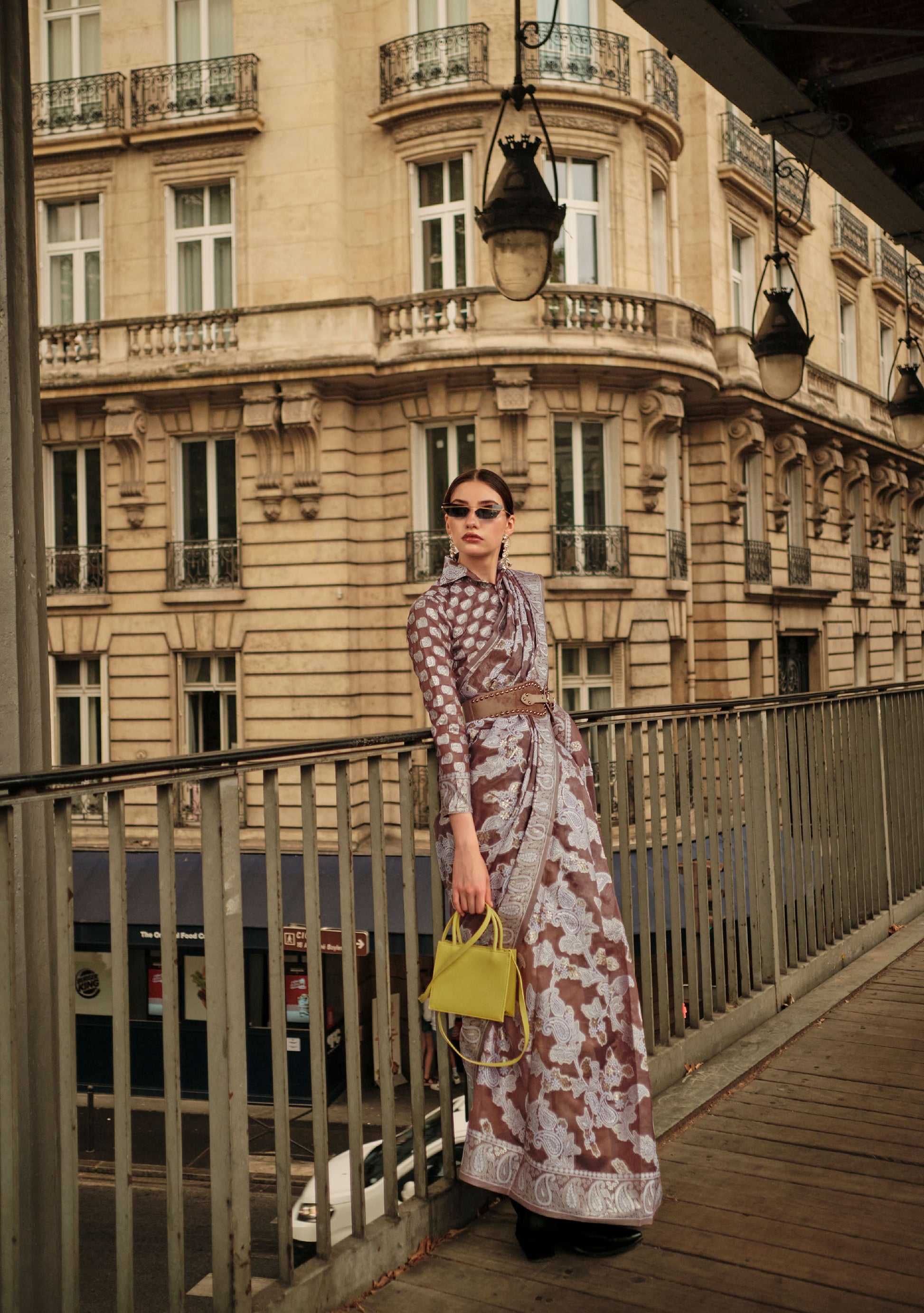 Brown Kaneeza Lucknow Chikankari Zari Saree
