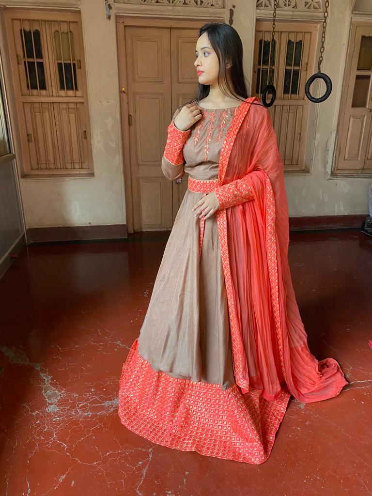 It is a designer pattern in silk having pitta zari work on borders followed with chiffon dupatta.